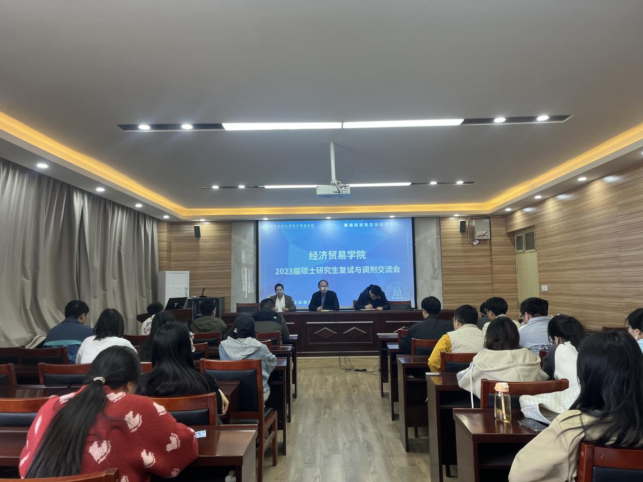 在3605会议室召开2023届研究生复试与调剂交流会。学院副院长李文启、党委副书记岳鹏珍、学工办主任李振宇及部分考研学生代表参加会议。会议由毕业班辅导员时燕明主持。