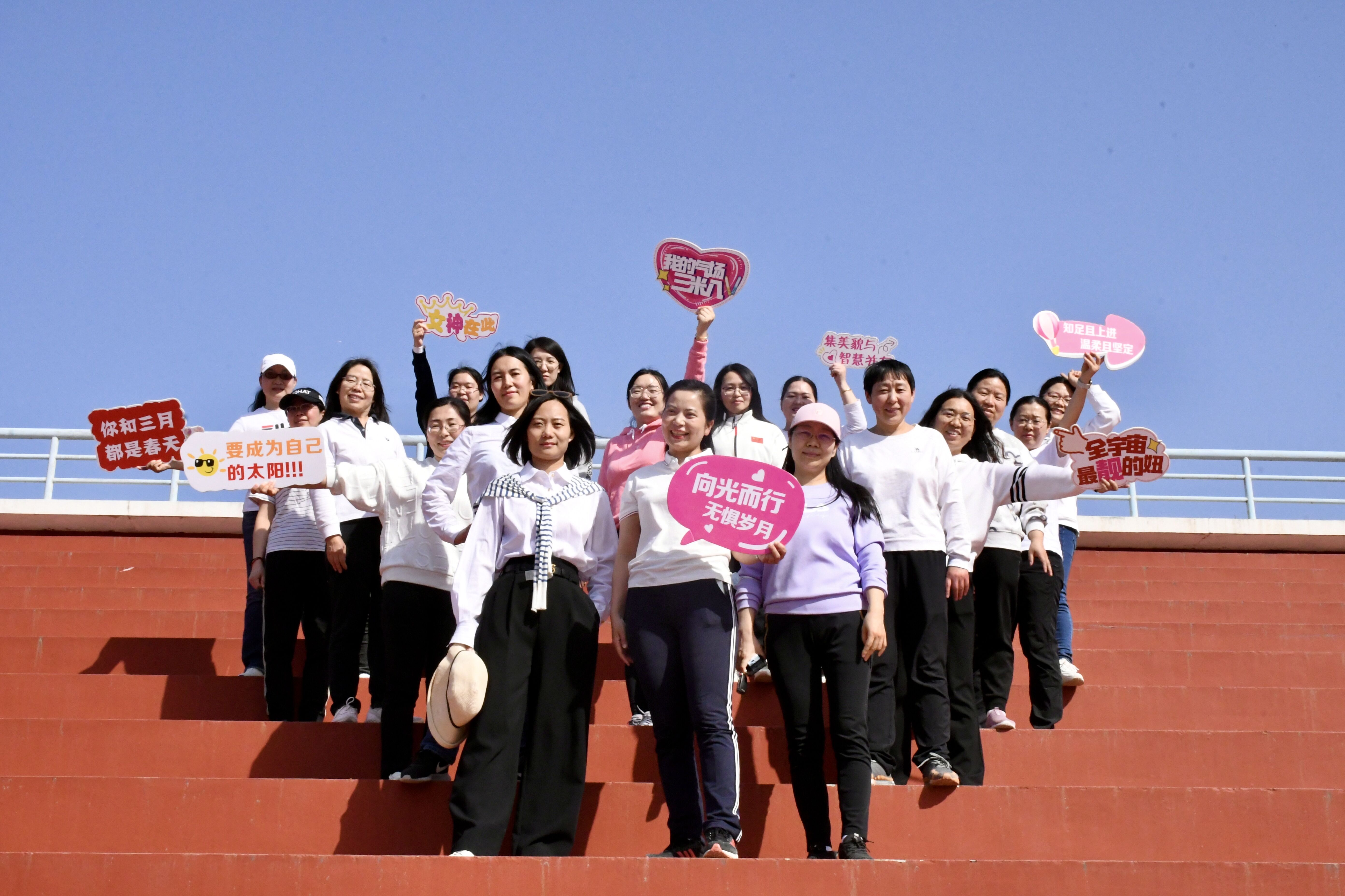 本次活动得到学院众多女教工积极响应和参与。活动现场气氛温暖而热烈,欢声笑语布满操场。放眼望去,“无惧岁月”、“我的气场三米八”等标语暖人心扉,“女神看经贸”、“向光而行”等标语展现出经贸女教工们积极自信,“你和三月都是春天”、“春光无限好”等标语展现春天之美好。无论是拍摄者还是教职工都尽情投入,享受这一温暖、和谐、美好的时刻。阳光温暖的笑容定格在镜头中,银铃般的串串笑声响彻校园。此次活动使女教工们感受了春光的无尽美好,促进了女教工间的友谊,增强了团结合作意识。