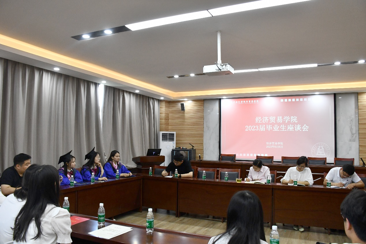 的成长历程,畅谈在校求学的丰硕收获,感谢学校、学院的悉心培养、老师的辛勤教导,诉说即将离别的不舍之情。毕业生代表积极为学校的改革发展建言献策,分别从学院建设、人才培养、教学科研、服务管理等方面提出了意见和建议。此外,他们还表示要积极响应新时代对青年的号召,勇于担当,敢于追梦,到祖国和人民最需要的地方建功立业。