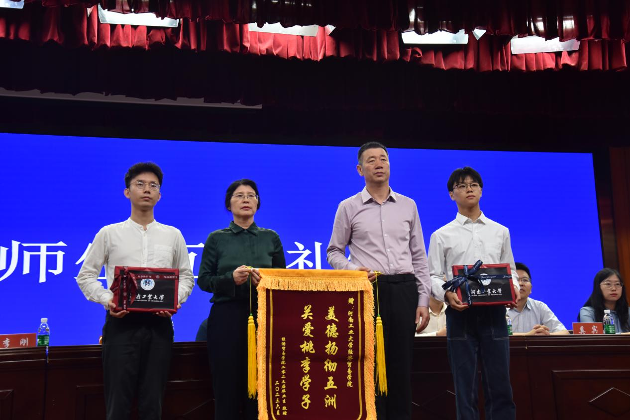 为感谢学院全体教师对毕业生的悉心教导,院长孙中叶和党委书记李刚代表学院接受毕业生赠送的锦旗,并向毕业生赠送纪念礼物。随后,全体毕业生起立,在老师的见证下,由毕业生王文龙领誓,共同进行庄严的廉洁从业宣誓。