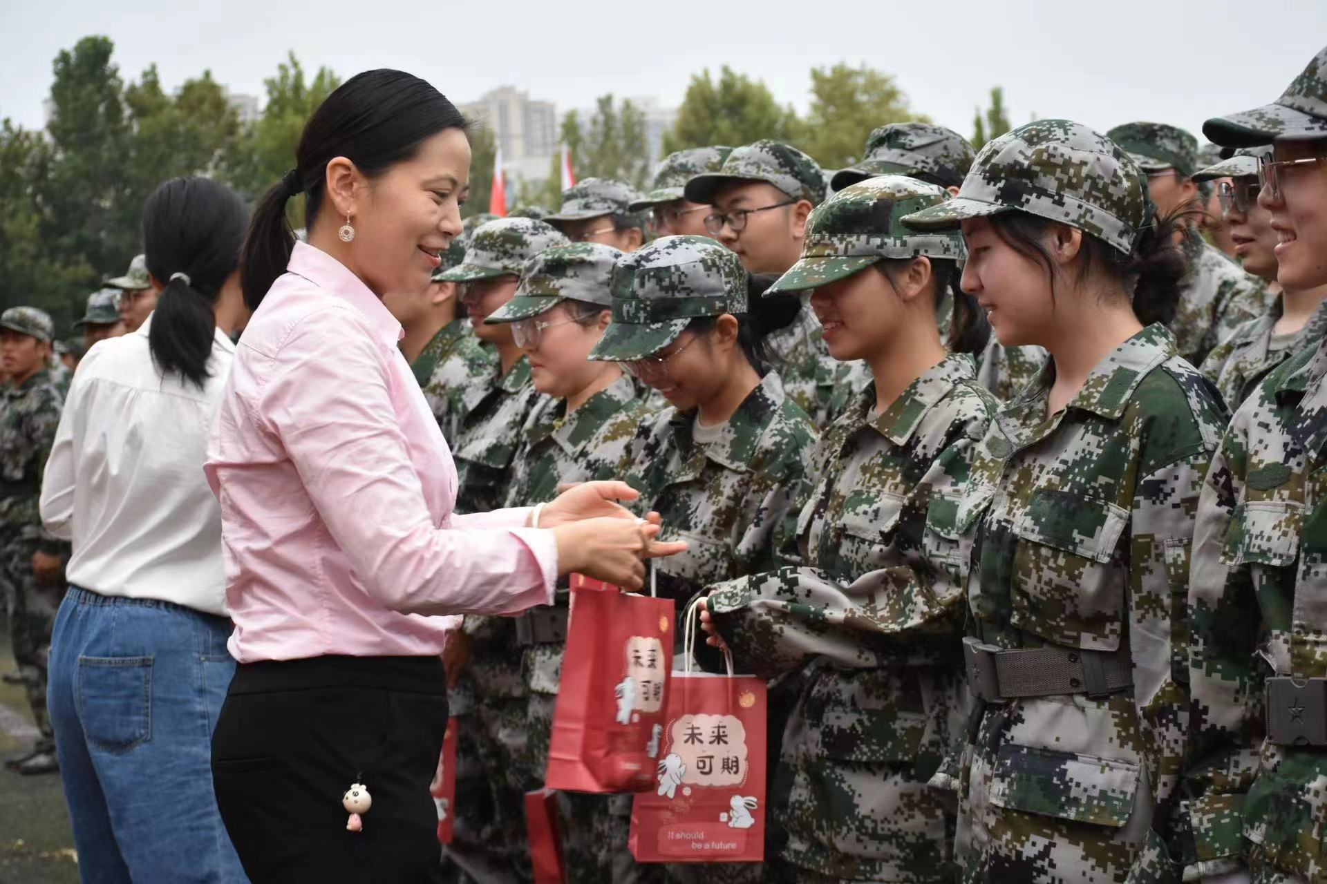 向军训学生发放慰问品