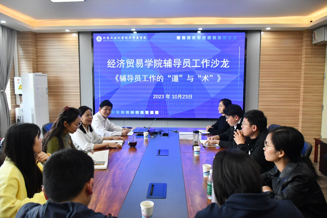 活动中,许文从“道”与“术”的教育学意蕴、辅导员工作之“道”、辅导员工作之“术”三个方面详细阐述了辅导员作为大学生思想政治教育的骨干力量,应该如何开展工作、如何做学生成长成才的人生导师和健康生活的知心朋友。随后,各年级辅导员围绕自身工作内容,分别从党团建设、学风建设、考研就业、学生干部队伍建设等几个方面讲述了自己的工作方法和工作中遇到的困难。许文和岳鹏珍针对辅导员们在工作中遇到的实际问题,分享了他们在学生工作中的思想引领和日常管理中的经验方法。大家畅所欲言,气氛热烈。