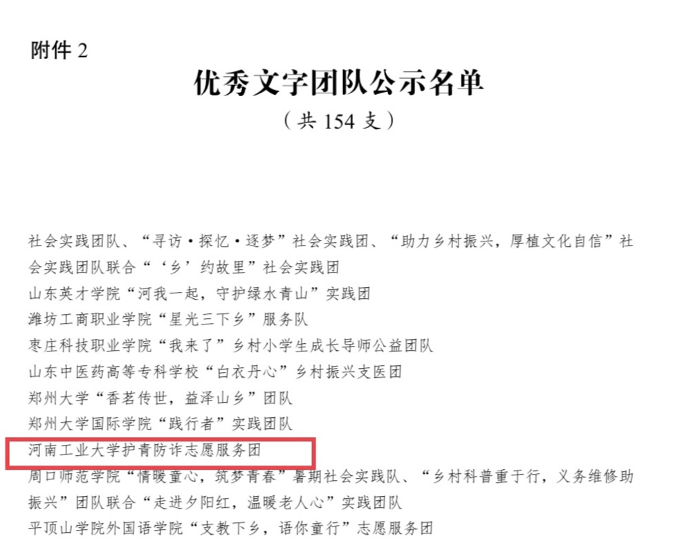 “护青防诈”志愿服务团赴湖北恩施,开展以“志愿汇聚星火,真心护翼未来”为主题的暑期社会实践活动。团队采用走访社区、宣传防诈知识、开展主题教育讲座等形式,走进少年宫、微型科技馆,进行青少年心理健康教育、正确金钱观的培养以及网络新型诈骗案例的分析学习,以志愿精神守护青少年健康成长,以切实行动呼吁更多人参与到“护青”队伍当中。团队事迹受到中国青年网、大学生网报、搜狐新闻等媒体报道,累计发表稿件31篇,曾获评河南省青年服务大赛银奖、公益创业大赛特等奖、河南省年度公益组织等。