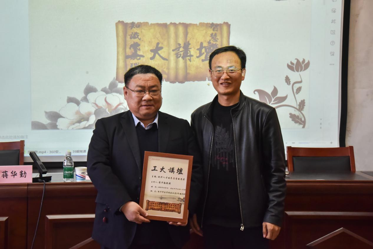 校团委副书记吴鹏向蒋华勤教授赠送工大讲坛纪念海报