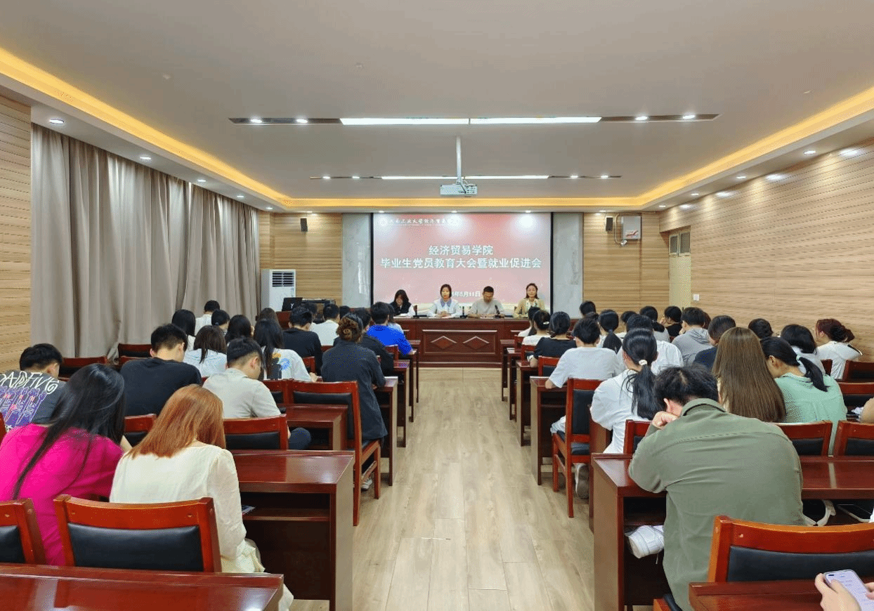 在博识楼3605会议室召开毕业生党员教育大会暨就业促进会。院党委副书记岳鹏珍、团委副书记王秋瑾、毕业班辅导员和全体毕业生党员参加会议,学工办主任张福勇主持会议。