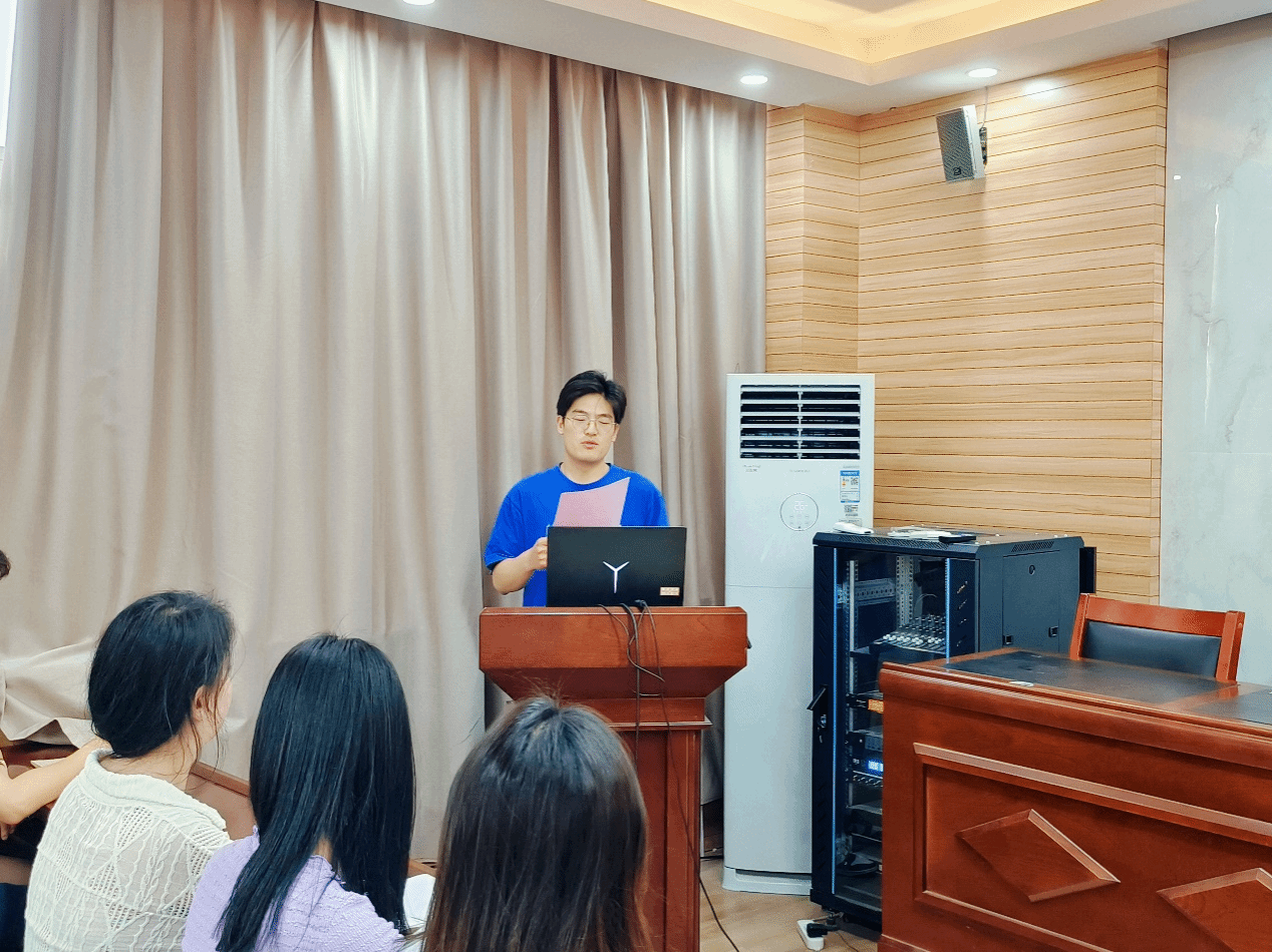 毕业生党员代表王锦辉从自身考研、择业、就业目标调整、成功就业的整个心路历程及感悟进行分享。
