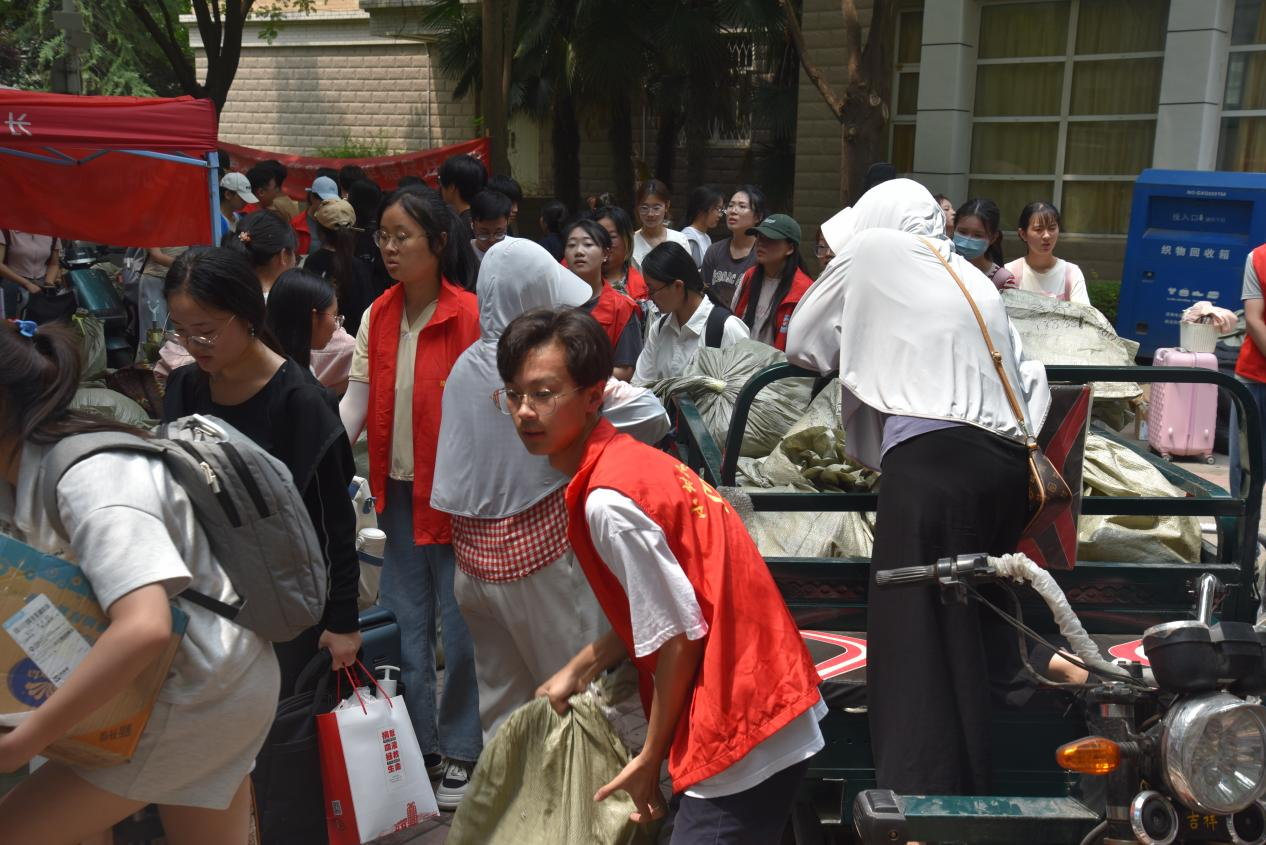 学院党委高度重视此次搬迁工作,专题召开会议研究审定搬迁方案,统一思想认识,明确责任分工,为顺利搬迁提供有力保证。搬迁期间,学院领导班子和辅导员全程负责,党委书记李刚、副书记岳鹏珍紧盯每一个环节和细节,加强现场指挥协调;全体辅导员铆在战位不放松,从宿舍分配到行李搬运、物品放置,热情周到搞好服务;学生会提前招募300多名志愿者,有条不紊地帮助行李转运工作。校园里,师生们挥汗如雨,忙忙碌碌,体现出了高度的团队意识和担当精神,他们脸上肆意流淌的汗水映射出经贸学院的精神底色,保证了搬迁工作高效顺利进行。