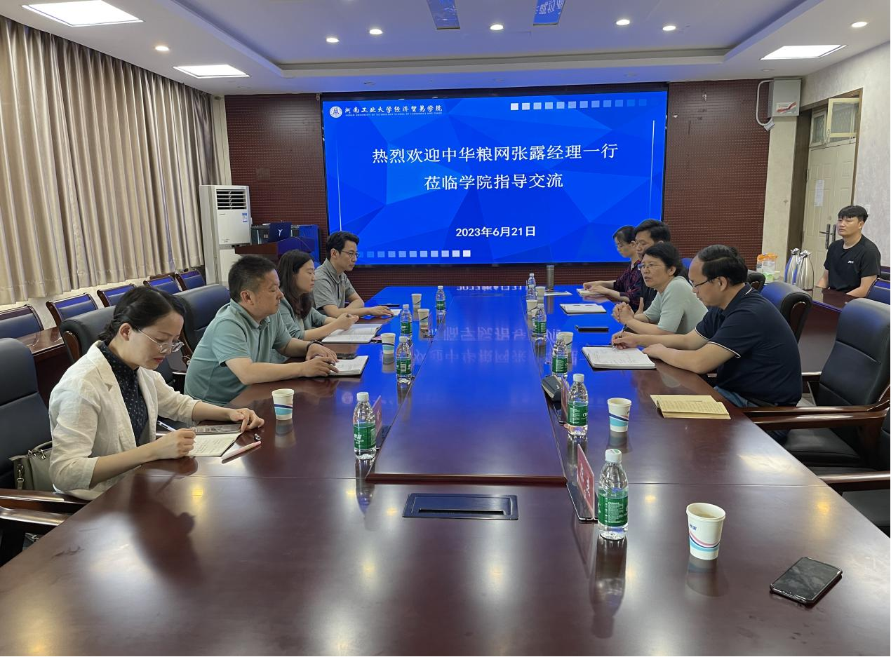 调研指导表示热烈欢迎,简要介绍了学院学科建设、人才培养、科学研究、社会服务等基本情况。张露介绍了中华粮网的基本情况、业务类型和未来发展方向。李文启重点介绍了农业硕士培养、学位点建设等情况。随后,双方就产教融合和校企合作等问题展开了热烈的讨论和交流。