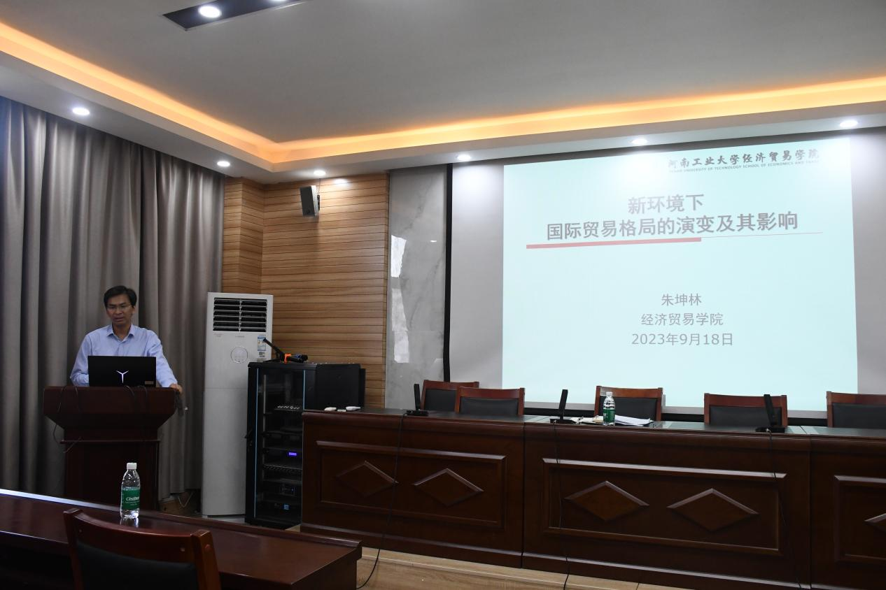 开班典礼结束后,朱坤林为金融学拔尖人才创新实验班作了题为“新环境下国际贸易格局的演变及其影响”的第一期学术报告。报告主要围绕国际贸易格局演变的特点、国际贸易格局演变对“双循环”的影响、未来发展及应对等问题进行探讨交流。