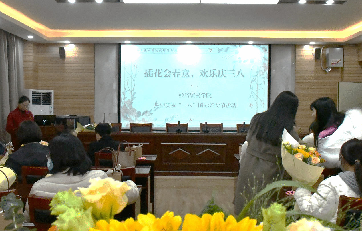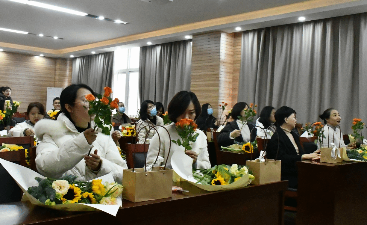 活动现场,花香四溢,春意盎然。活动在轻松愉快的氛围中展开,学院分工会主席岳鹏珍向各位女教职工的到来表示欢迎与感谢,并为大家送上“三八”国际劳动妇女节的祝福。