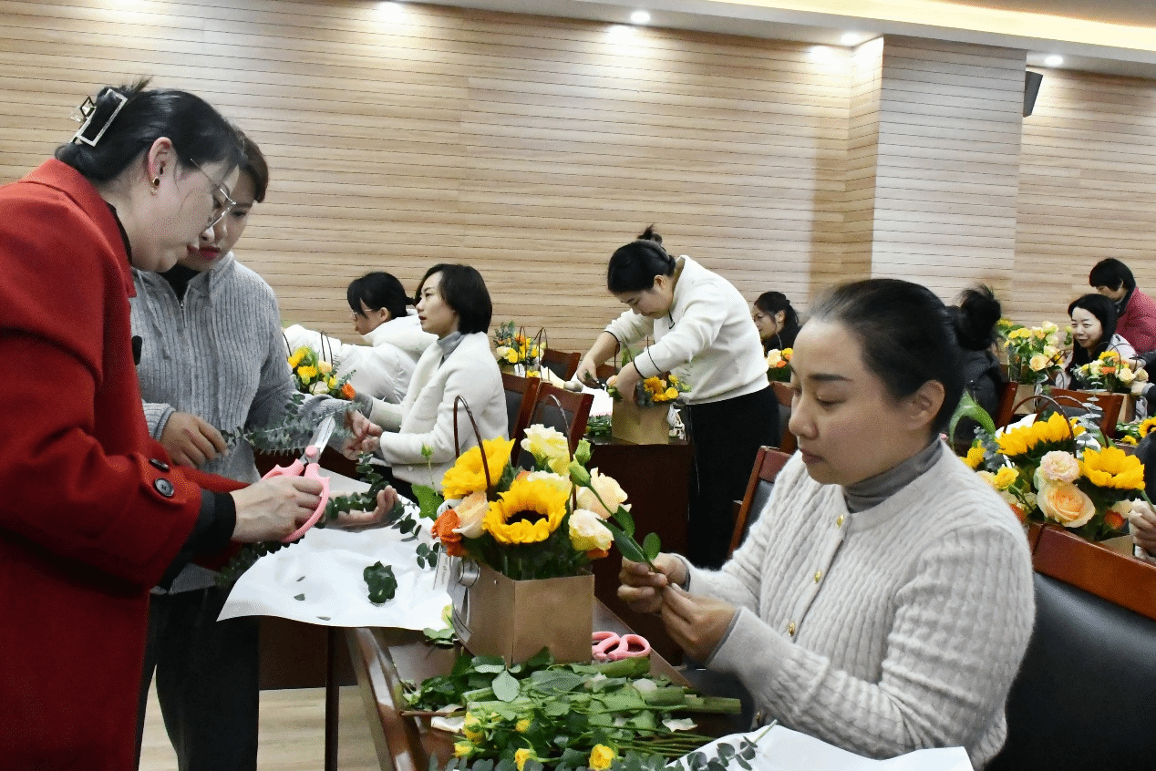 分工会于3月5日在博识楼3605会议室举办了“插花会春意,欢乐庆三八”插花沙龙活动,麻豆tv