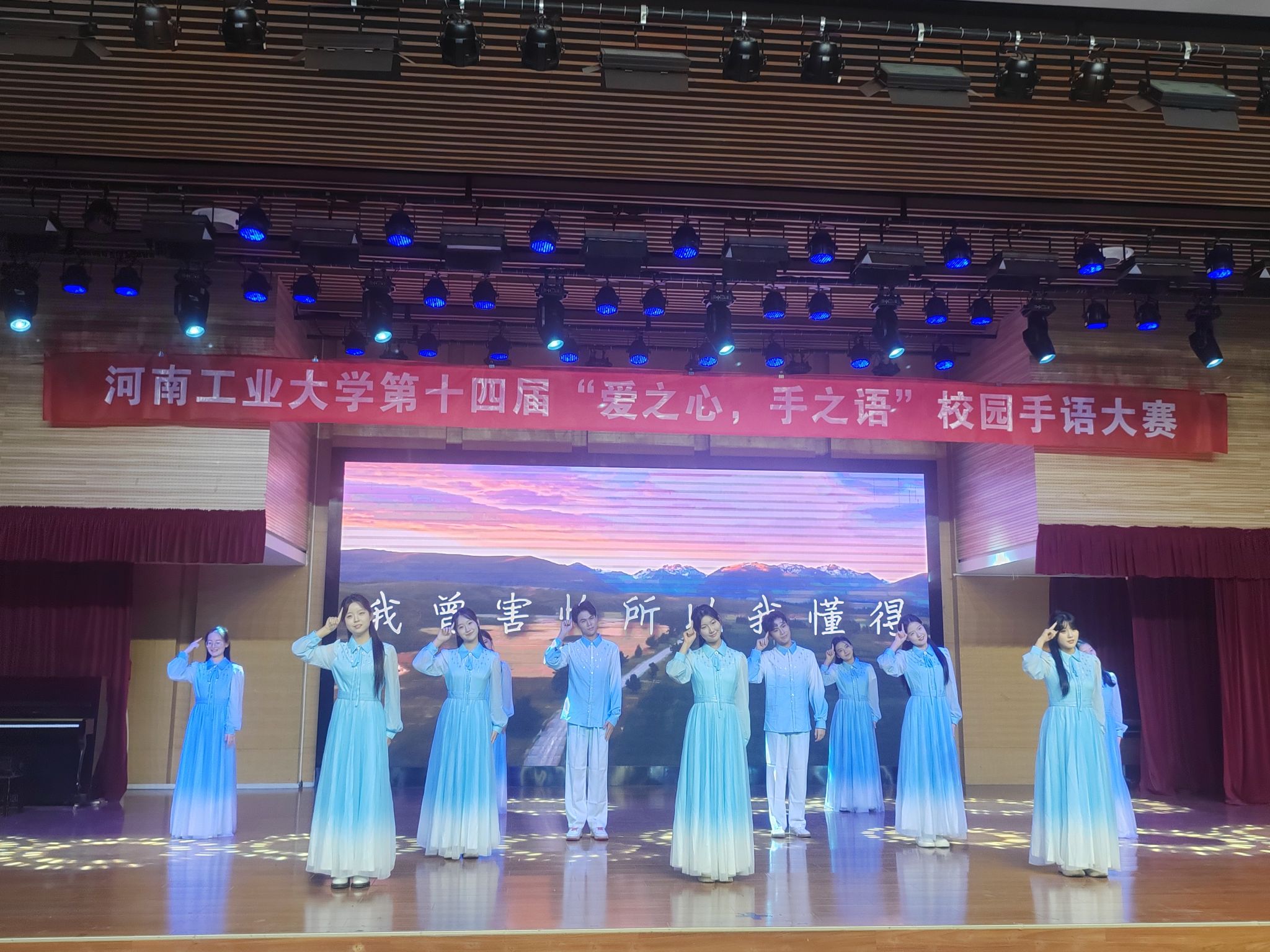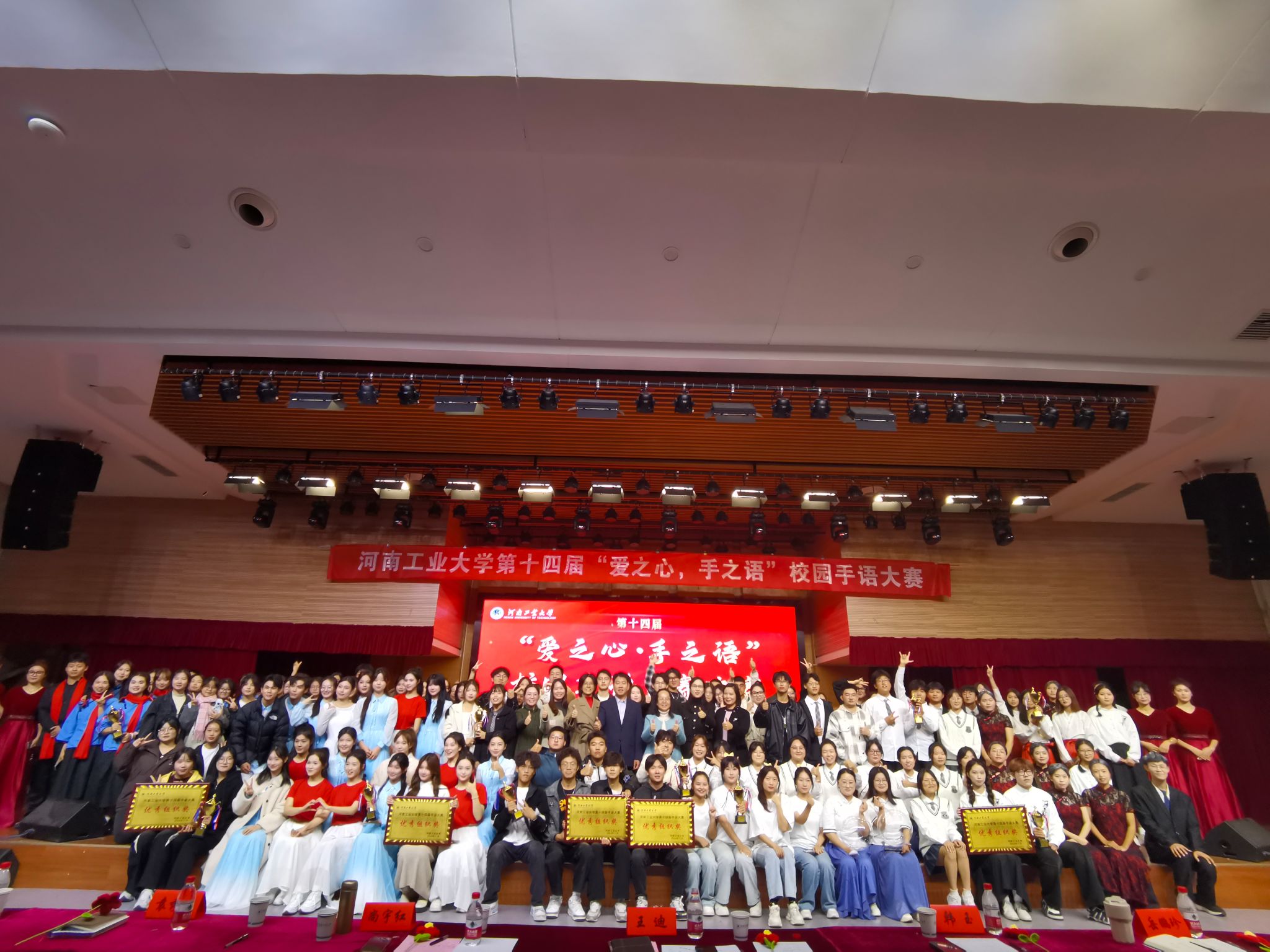 《送你一朵小红花》表达了对生命的热爱和对苦难的不屈,一朵朵小红花温暖了每一个在困境中苦苦挣扎的人;明德书院《好想爱这个世界啊》用手语表达着对校园暴力的批判与抵抗,无声地诉说着爱与被爱,有力地回击着那些无情的施暴者……比赛以粮食和物资储备学院《国家》作结,家国之情在大厅里久久回响。每一支参赛队伍都以独特的方式诠释了手语的魅力,赢得了现场观众的阵阵掌声和评委的高度评价。