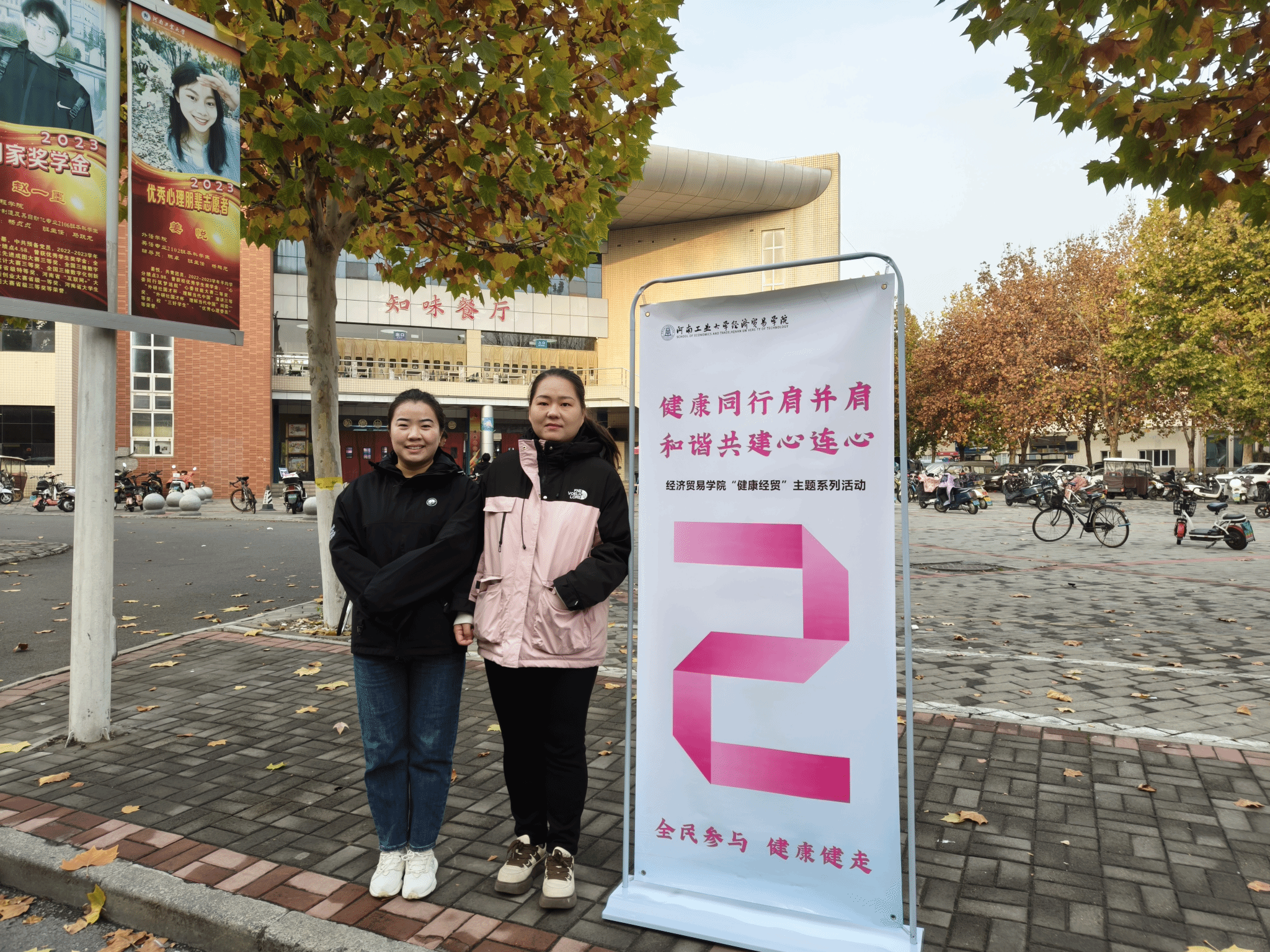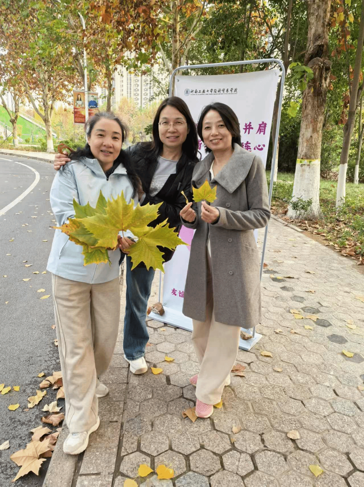 本次活动的行走路线为校内环道,途中共设有4个指定打卡位置,教职工在每个打卡点采用手机拍照模式,将人像与打卡数字背景进行合照,集齐4张不同合照,到终点签到确认并领取纪念品。自活动开始,各位教职工积极参与其中,或快步疾行,或小跑向前、或谈笑竞逐,以饱满的热情和灿烂的笑容,共赏满园秋意美景,尽享运动快乐。