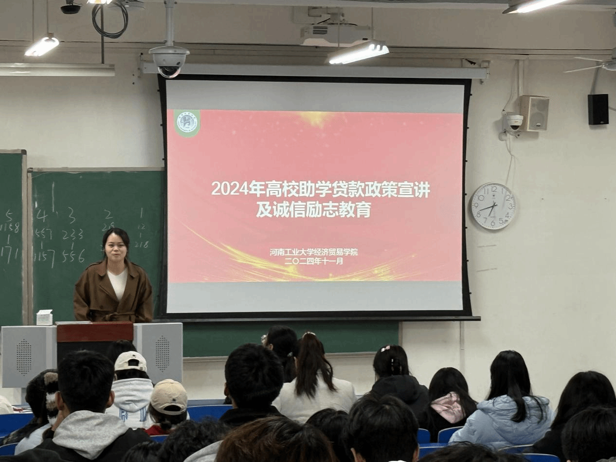 召开2024年高校贷款合同签订仪式暨感恩励志教育宣讲会。学院资助工作负责老师陈娜娜、学院生活部成员及申请高校贷款的同学参加了本次会议。