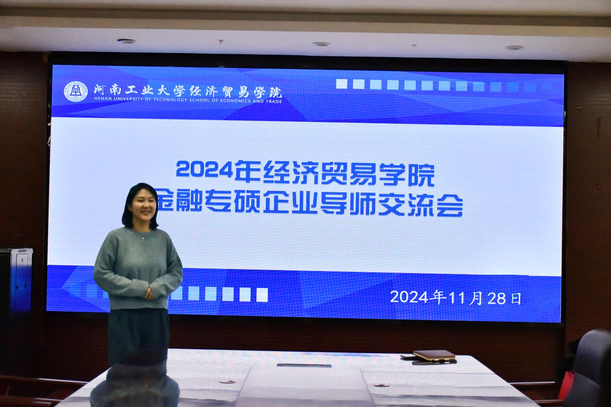 在3501会议室举办金融专硕导师交流会,本次会议邀请到中国农业银行郑州分行白君易女士为学院金融专硕学生分享从业经验。金融专业50余名研究生参与了本次交流会,会议由麻豆tv