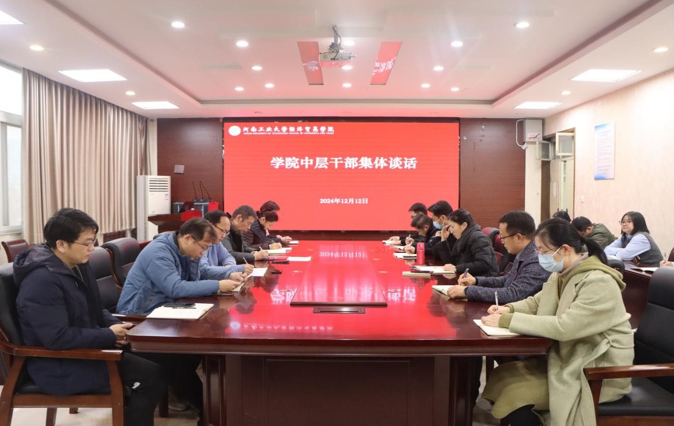 在3501会议室召开学院中层干部任职集体谈话会议。学院领导班子成员、全体中层干部参加会议。会议由党委书记李刚主持。