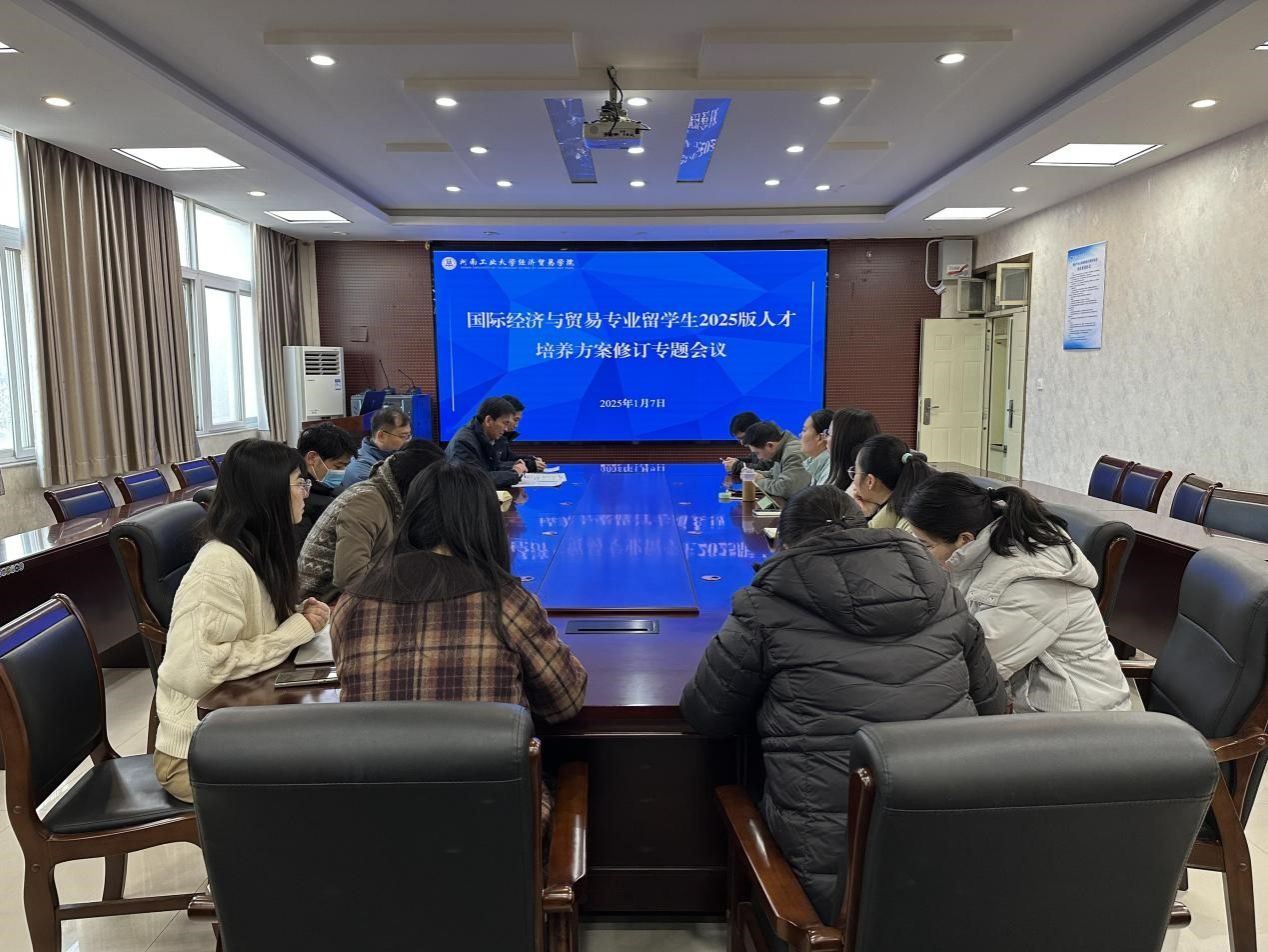 为做好国际经济与贸易专业本科学历留学生人才培养方案修订工作,进一步规范留学生培养过程,不断提高留学生培养质量,学院于1月7日上午在3501会议室召开2025版本科留学生人才培养方案修订专题会议。副院长郭力及承担留学生课程的骨干教师参加会议,会议由副院长朱坤林主持。