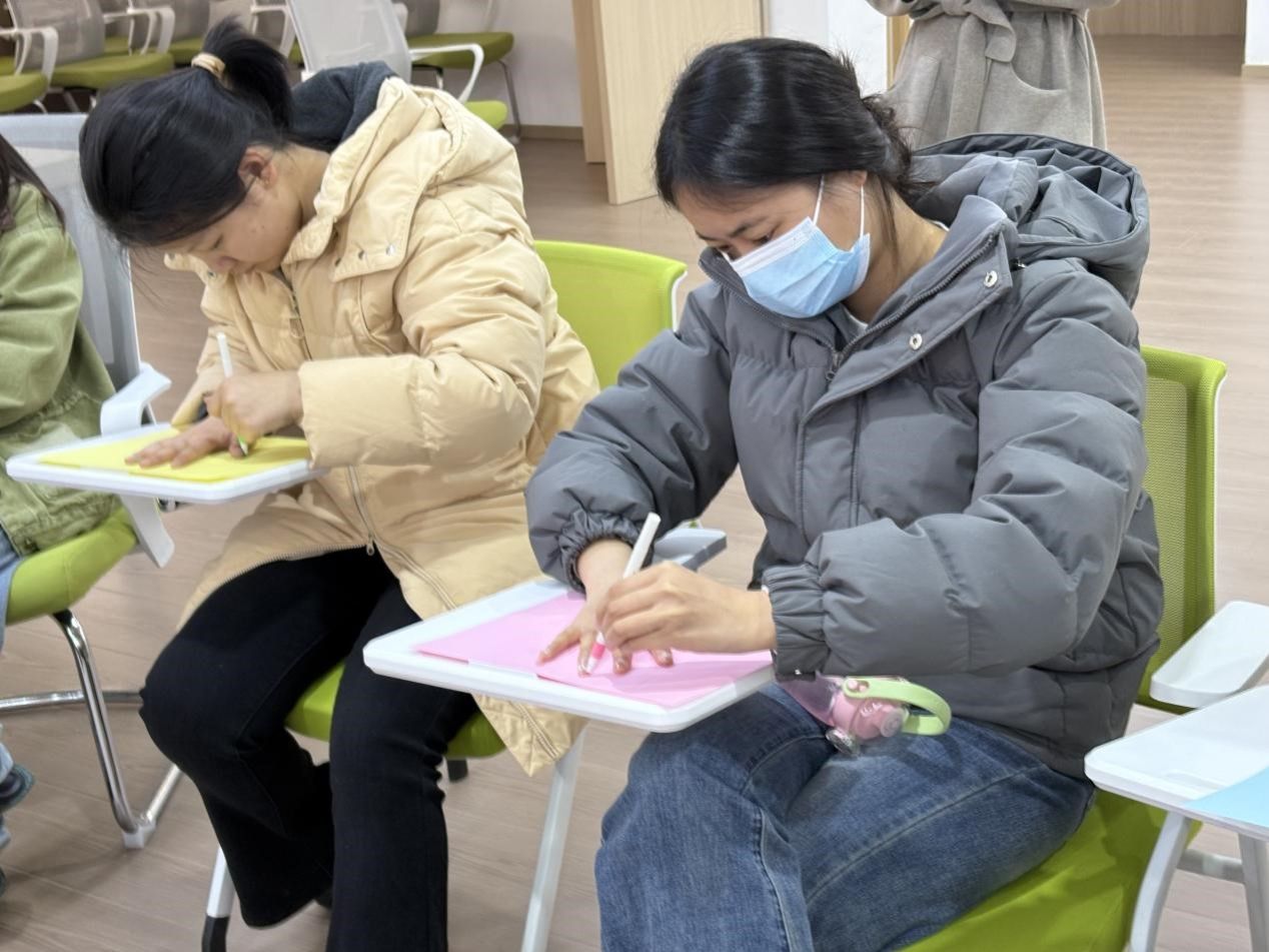 在培训环节,尚宇红以十指交叉测试为切入点,生动阐释心理咨询的非强迫性原则,她强调,心理咨询绝不能强迫性询问,而是要以共情和积极倾听为基石。随后,同学们在尚宇红的带领下开展了“爱在手心”绘画疗愈活动,依次分享了自己的感悟,剖析了亲密关系中的认知模式,尚宇红适时引入危机干预流程,明确“在面临紧急情况时,应首先向辅导员求助”的应急机制。在分享环节,心理委员们交流感受,决心将认知调节、危机识别等技能转化为守护力,筑牢校园心理安全屏障。