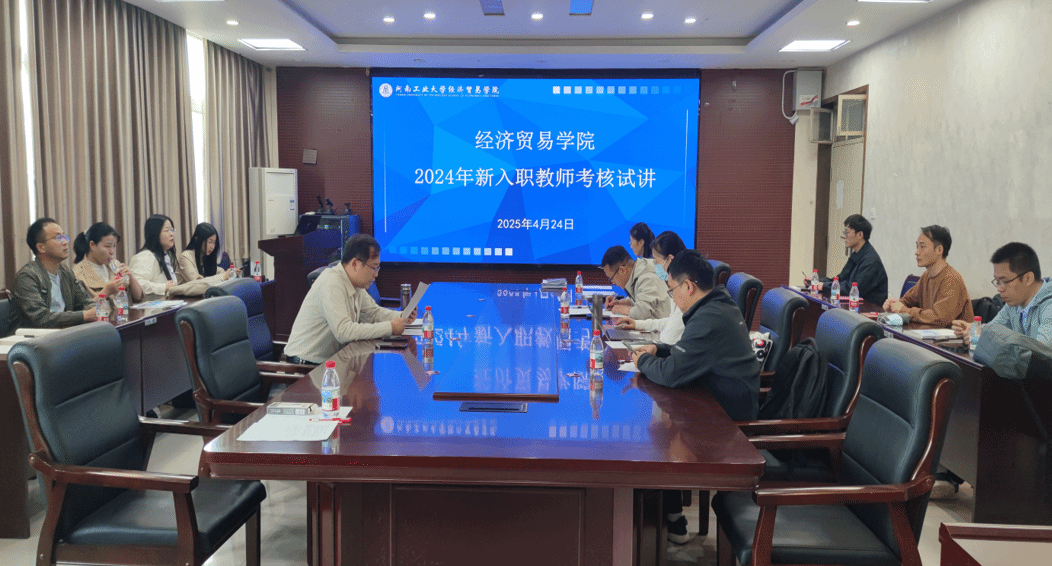 于4月24日上午在3501会议室开展2024年度新入职教师本科课堂教学准入考核工作。考核由副院长郭力主持,国贸系主任樊慧玲、金融学系主任宋博、经济学系主任何宇鹏、财政学系主任潘美薇等担任评审专家。
