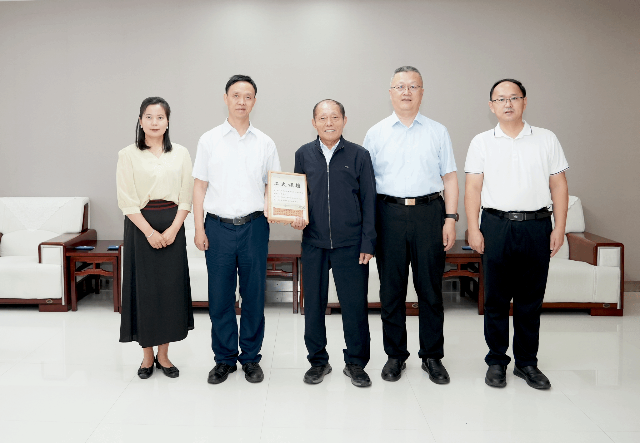校党委副书记黄泽峰向李连成书记赠送工大讲坛纪念海报