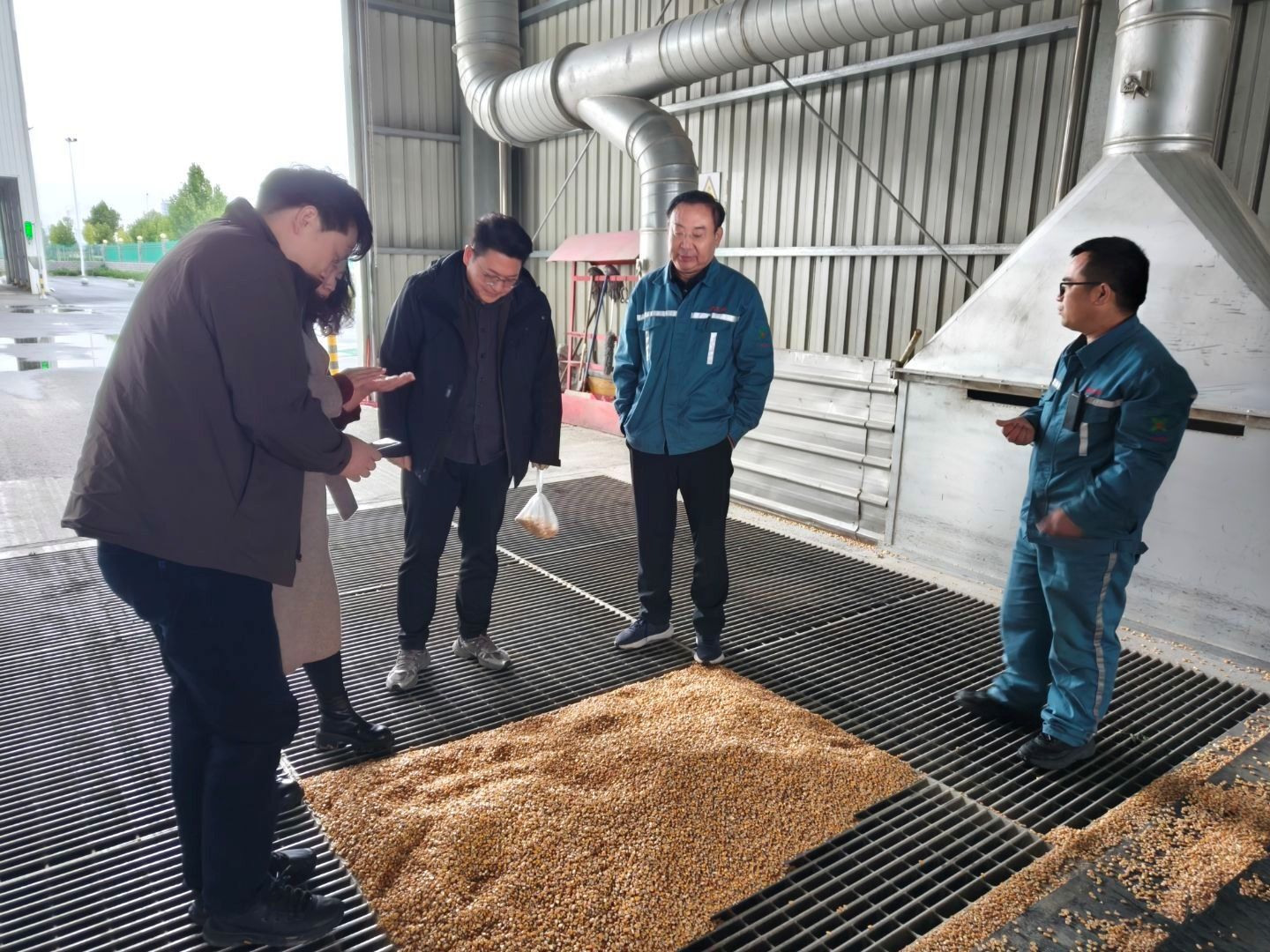 在方城县方田农机专业合作社,调研组详细了解玉米机械化收割进度与农机调度情况;在河南金玉峰生物科技有限公司,团队聚焦加工环节中高水分玉米对生产效率与成品质量的影响;走访周口海创牧业、河南省粮投集团商丘储备库期间,调研组系统收集企业在收购标准、烘干能力、仓储条件等方面的实际诉求;在开封农科院玉米所,专家们围绕耐涝品种选育与适应性种植结构展开研讨。