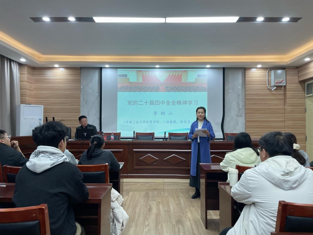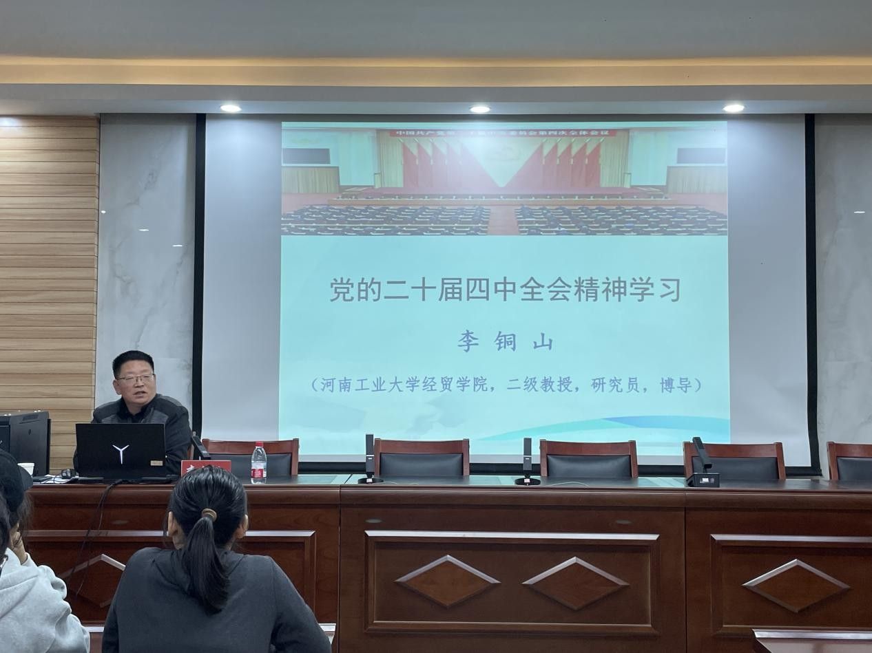 会上,特邀李铜山教授作专题辅导报告。他以丰富的内容、精深的阐释,为全院党员呈现了一场高质量的精彩报告。他紧扣全会文件,以宏阔视角和严密逻辑,从三个方面进行了系统解读:一是深刻阐释全会的重大意义与历史方位。李铜山指出,全会通过的《建议》是指导“十五五”时期发展的纲领性文件,系统总结了“十四五”成就,科学研判了未来五年发展环境,是接续推进中国式现代化建设的总动员与总部署;二是系统梳理全会的核心内容与战略部署。他深入阐述了在“五位一体”总体布局和“四个全面”战略布局下,如何着力推动高质量发展、扎实推进共同富裕等一系列核心举措。三是精准把握学习贯彻的实践要求。李铜山结合学院学科特色,强调要将全会精神融入教学科研,为服务国家粮食安全与乡村振兴战略贡献智慧,将宏伟蓝图转化为务实行动。