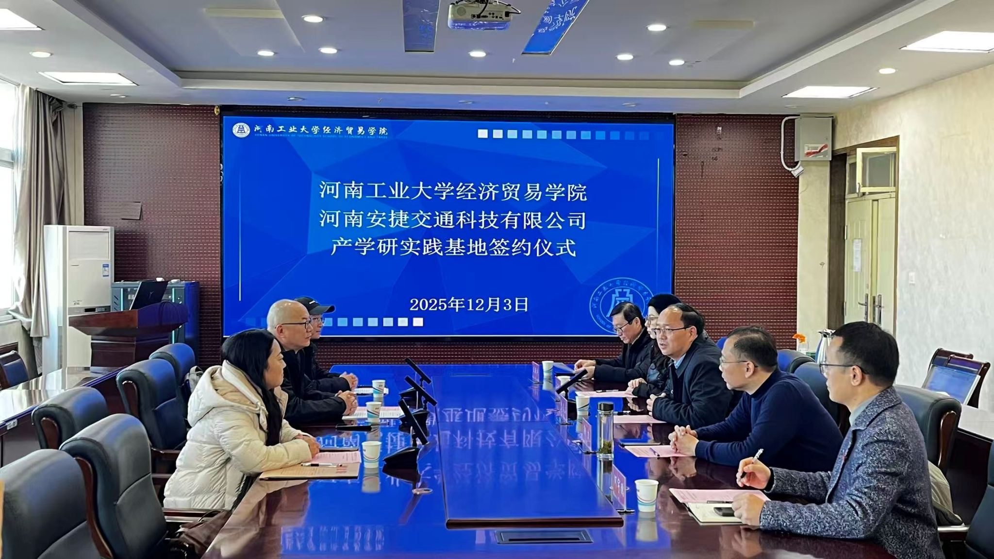 于12月3日在3号楼501会议室与河南安捷交通科技有限公司举行产学研实践基地签约仪式。麻豆tv