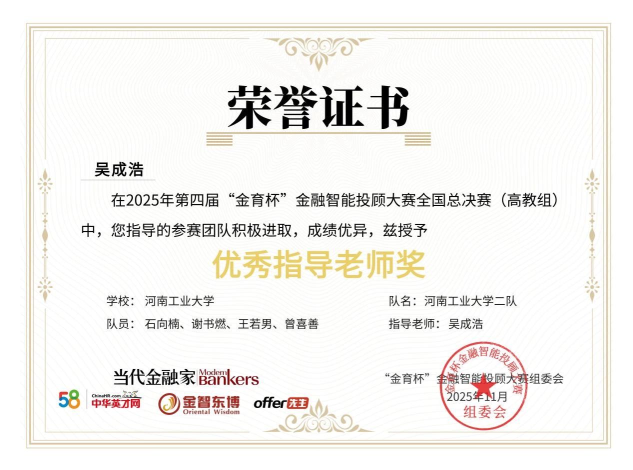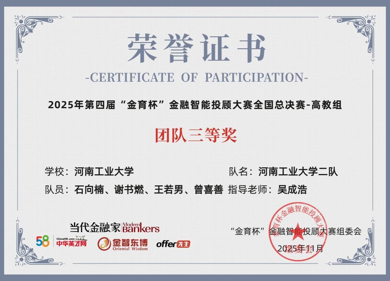 金融专业建设与人才培养的又一重要成果。未来,学院将继续加强“金育杯”等全国性学科竞赛组织和激励,进一步完善“理论-工具-实战”三位一体的培养体系,为金融科技发展培育更多高素质复合型人才。(文/吴成浩 图/吴成浩 审校/郭力 审核/李文启)
