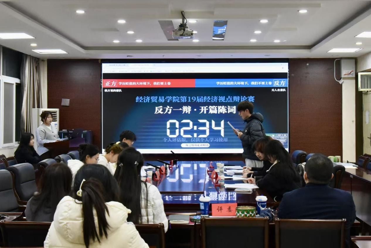 第十九届经济视点辩论赛在博识楼3501会议室举行。本次赛事邀请副院长郭力、金融系教工党支部宣传委员马晓鑫、财政系教师代表张峰、辅导员张瑞玲担任评委,学院第43期入党积极分子代表参与本次活动。