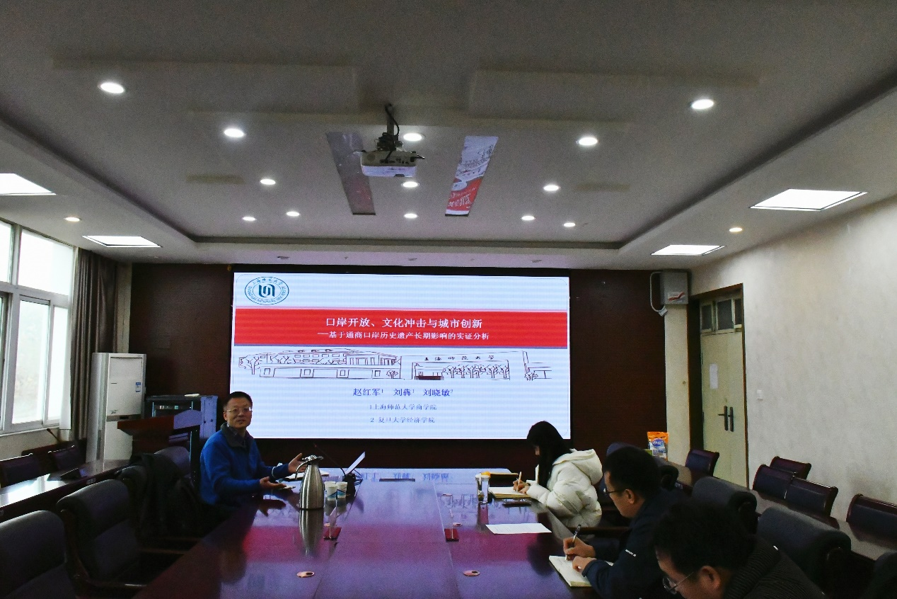 赵红军教授深入挖掘当代城市创新能力背后的历史根源,利用清末开埠通商作为自然实验,研究了口岸开放这一历史事件对我国当代城市创新的影响及其作用机制。他认为,通商口岸的设立从文化渗透和科技传播两个方面为近代中国带来了全新的文化冲击。这些外来文化在融入本土的过程中,加速了地区教育、经济的近代化进程,为地区今后的经济社会发展奠定了深厚的历史文化基础。从具体影响机制来看,口岸开放主要通过促进人力资本积累、优化当代营商环境以及营造创新氛围等显著促进了当代城市创新能力的提高。因此,要以更加开放的姿态扩大我国的对外开放水平与层次,以更加创新的行为破解当下现实中的挑战与难题。在互动交流环节,学院师生围绕论文的研究主题、研究方法、写作技巧等方面与赵红军教授展开了深入探讨。