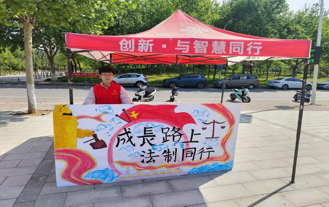 特意制作了以“成长路上,法制同行”为主题的宣传海报,在钟楼广场上进行现场普法宣传,现场志愿者积极宣传法律知识,科普普法教育的重要性,吸引众多学生纷纷驻足参与,学习国家法律法规。