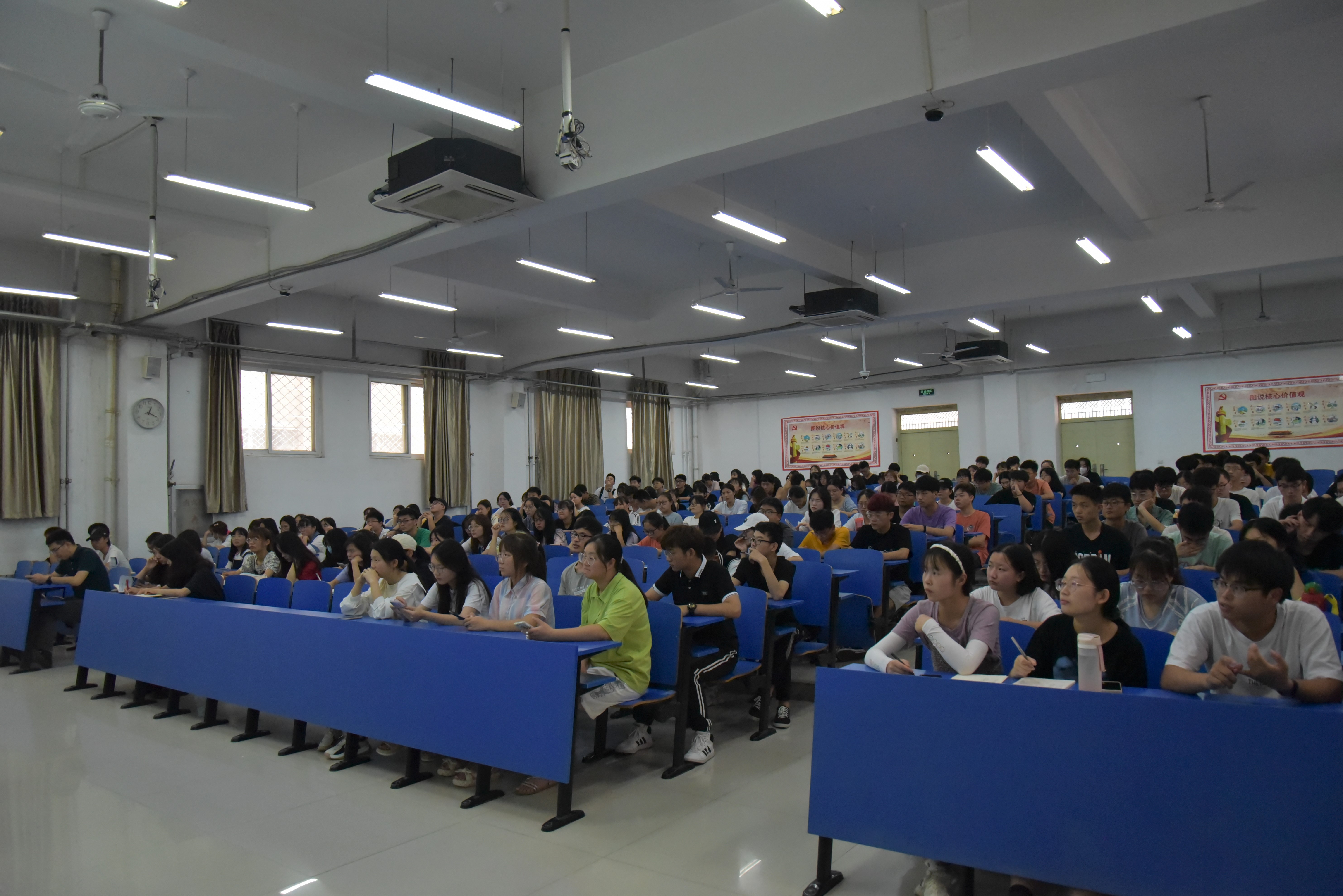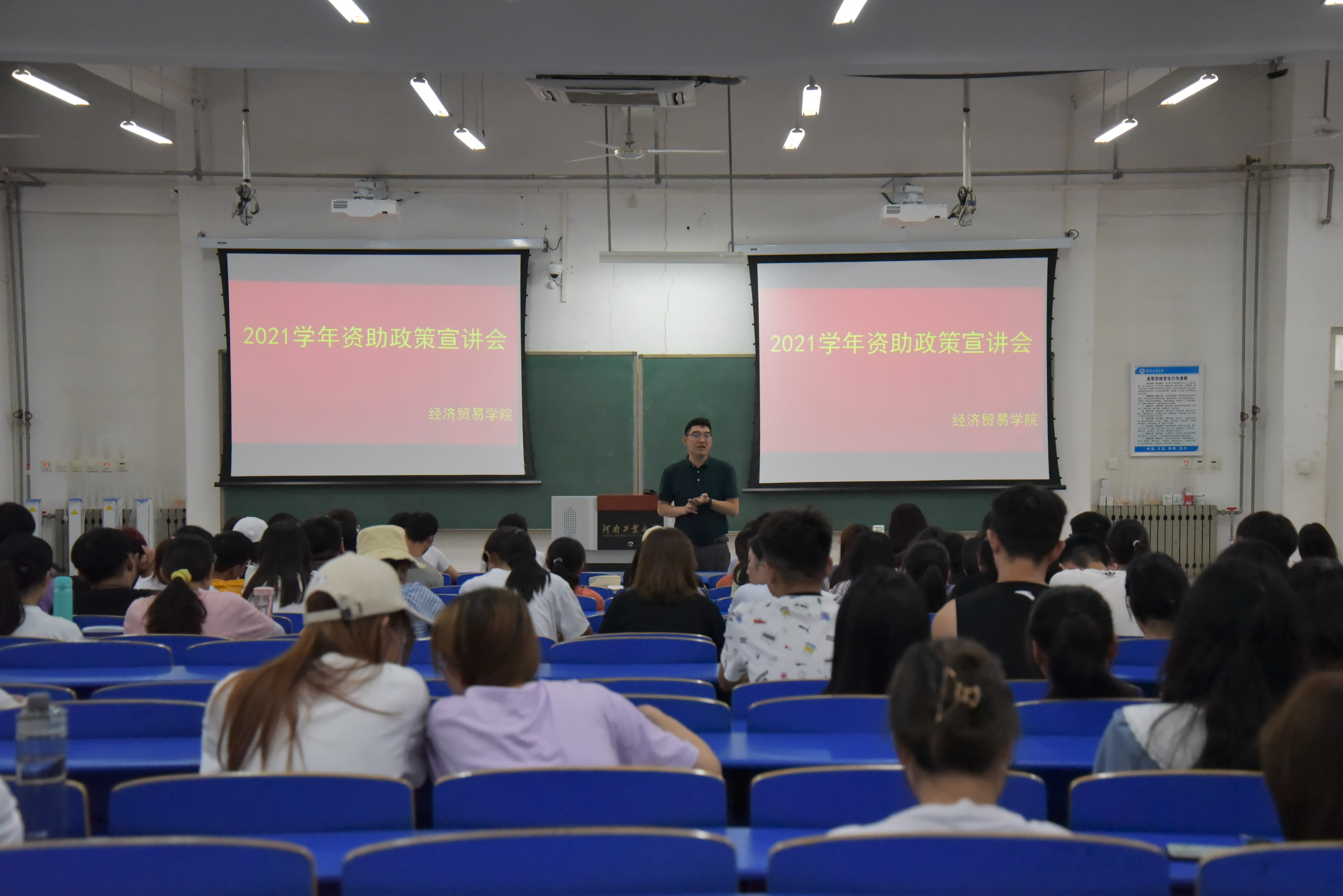 在6月29日和7月2日在3101教室分年级开展资助政策宣讲暨诚信教育宣讲会。院党委副书记王鹏、学工办负责人李振宇、团委负责人孙玉涵、2019级辅导员郑帅及各年级班长和所有有意愿申请下学期家庭困难认定和助学金的学生参加了会议。会议由2017级辅导员王秋瑾主持。