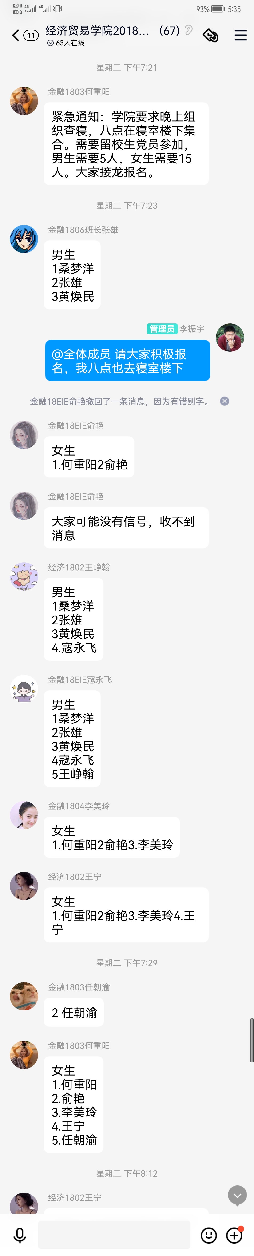 7月20日下午暴雨初降,2018级辅导员李振宇与值班党员学生何重阳、桑梦洋于下午17时及时组织学生从三号楼自习室有序返回宿舍。由于通讯设备等基础设施受损,宿舍区水电等基本生活需求未能得到保障,为落实学生安全情况,李振宇带领学生党员逐一排查宿舍,确保每一个学生都能安全地在宿舍待命,防止学生失联。