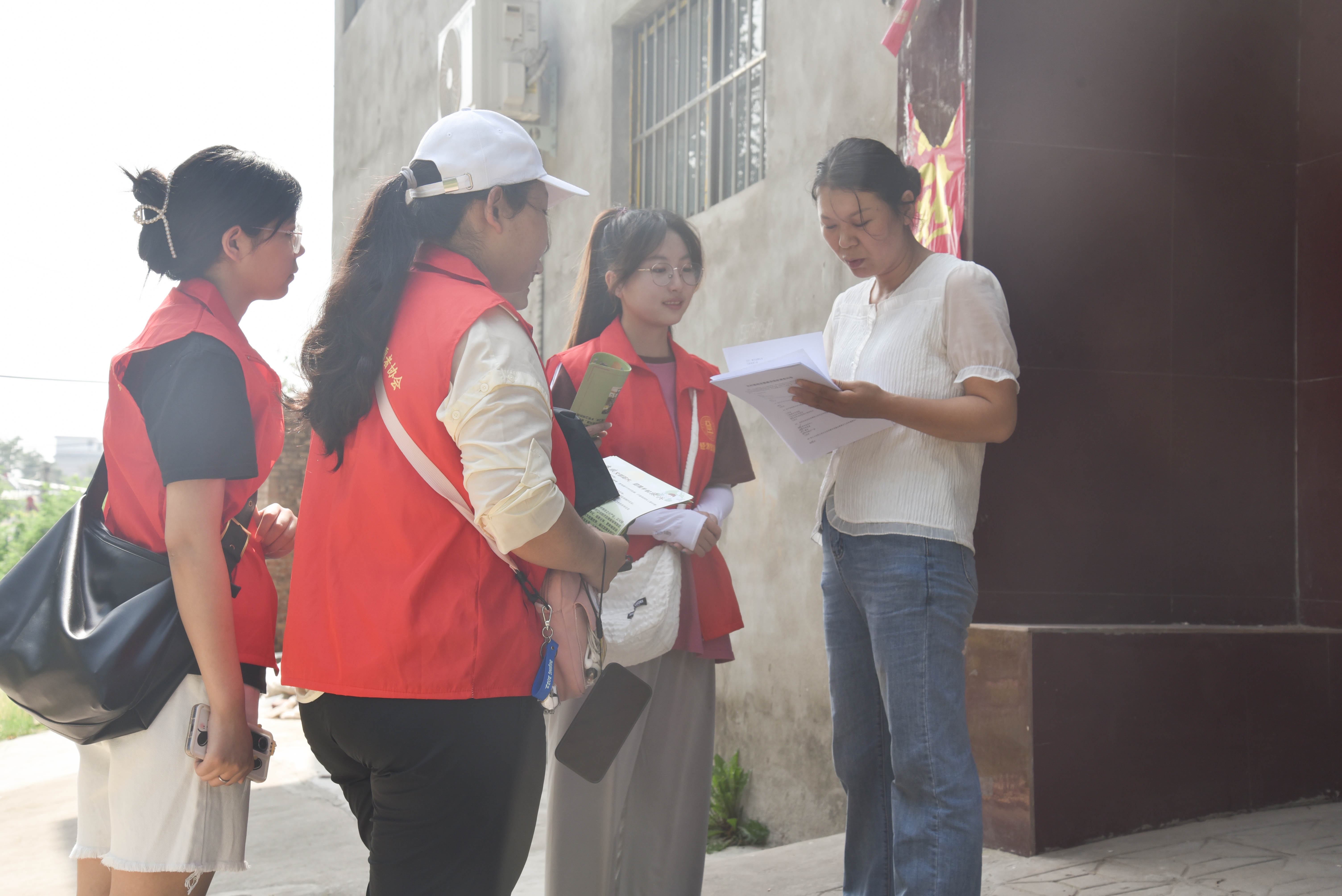 上午,团队成员来到平乐村,通过与村干部进行交流,了解本村的公共文化设施建设现状,得知本村新型基础设施建设较为完善,老年活动中心、图书阅览室、广播站等基础设施一应俱全,为村民的日常娱乐生活提供了极大的便利。为更加深入了解本村惠民设施的实际情况,队员们进行了大量的调研工作。队员们进入村民家中,分发调查问卷,积极与村民沟通,知晓他们的需求和意见,详细了解了本村惠民设施存在的问题。