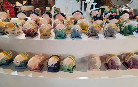 随后,实践成员在讲解员的带领下,在当地特色商铺购买三彩艺术品、陶瓷制品、手工艺品等纪念品,据相关人员讲述,“唐三彩小镇”文创产品又添“新丁”,由国家级非物质文化遗产唐三彩烧制技艺代表性传承人高水旺创作的“唐小妞”“墩墩马”系列已批量上市,其丰富多变、轮廓饱满圆润、胖嘟嘟的趣味造型受广大年轻人青睐。