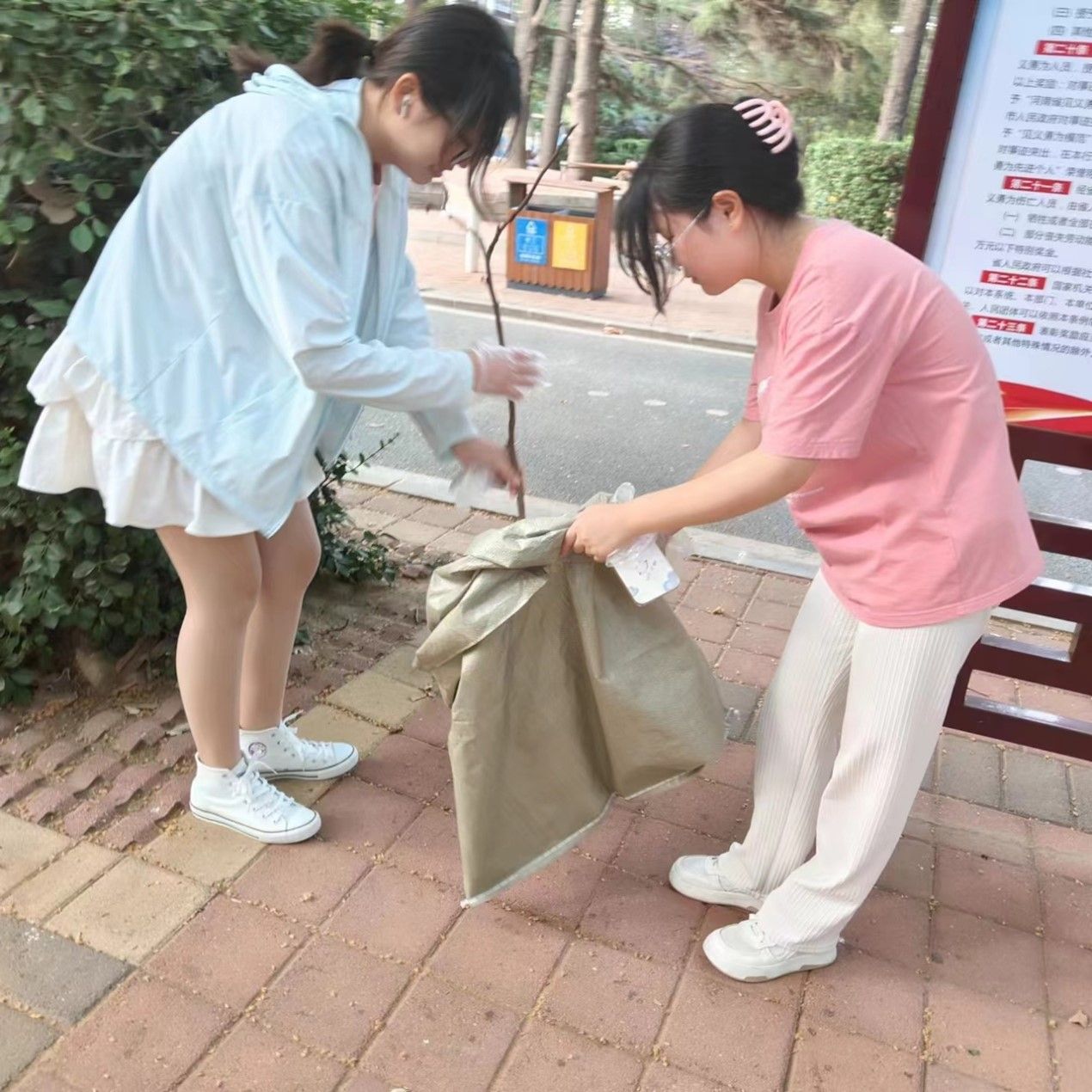 基层服务社会实践团成员在河南省周口市周口公园开展捡拾垃圾实践活动。助力公园环境保护,吸引路人关注的同时宣传金融知识,让广大群体了解金融诈骗的手段,提高防范意识,防止上当受骗。
