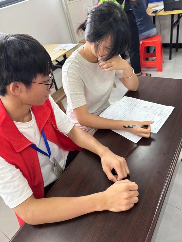 团队成员帮助学生填表