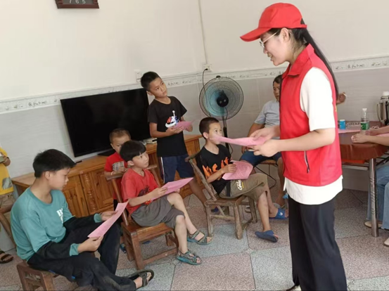 7月10日,团队成员前往新生村进行实践。首先,团队前往当地留守儿童学校,仔细观察孩子们的生活环境、课程设置和学习情况。通过与学校管理人员和教师的交流,了解到学校条件普遍简陋,师资力量不足,留守儿童在学校中的生活相对单调,缺乏亲情的温暖和关爱。团队组织了一对一的帮教活动,针对留守儿童的学习困难进行辅导。同时,团队还开展心理支持活动,帮助他们缓解孤独感和心理压力,通过与留守儿童的互动,鼓励他们积极乐观地面对生活,树立自信心。