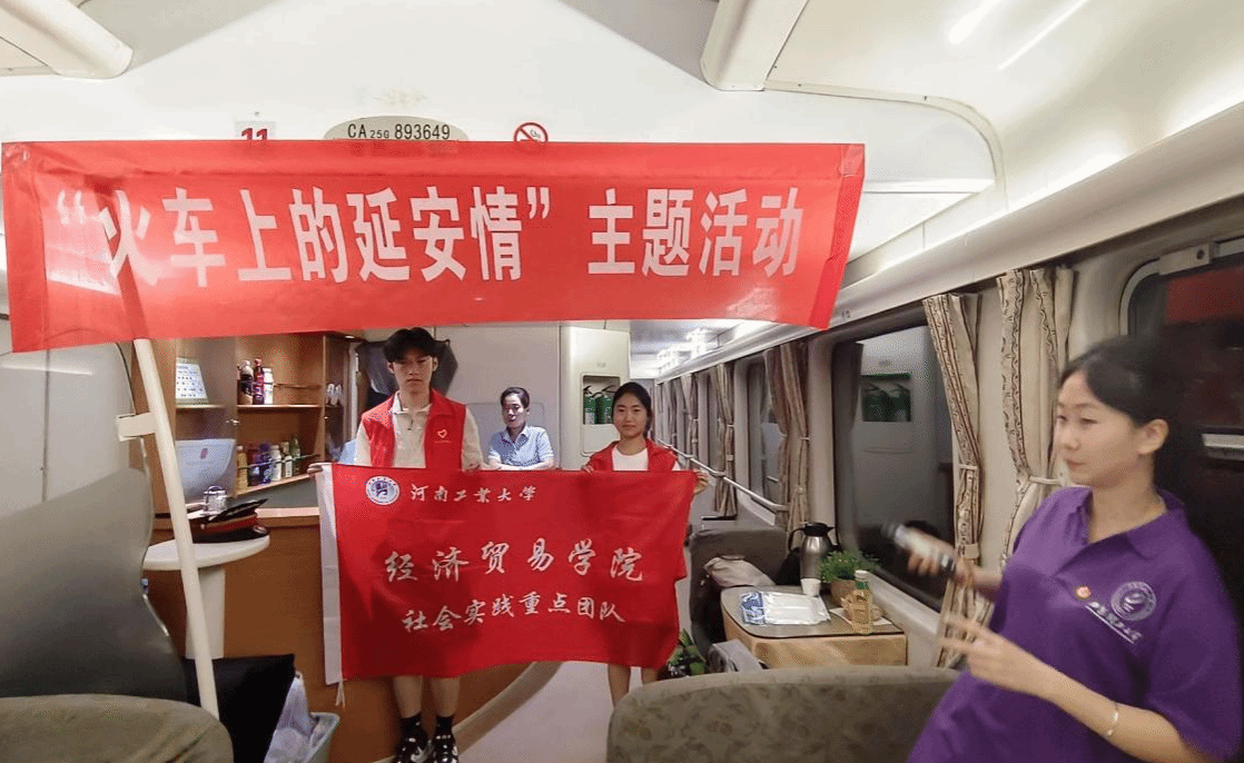 7月8日,实践团队由西安市奔赴延安市。在火车上,实践团成员们与西安理工大学“青马工程”团队共同体验“火车上的延安情”主题活动并共同感悟延安精神作为习近平新时代中国特色社会主义思想的历史根基的重要性。