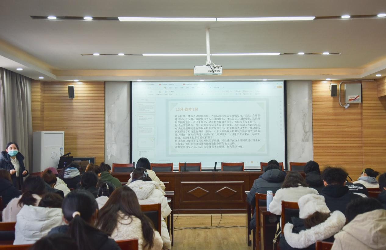 会议伊始,何宇鹏老师向大家介绍了学院里具备市场调研大赛丰富指导经验的老师们,并鼓励同学们会后积极咨询相关老师,与老师沟通组队、选题及项目论证等工作。