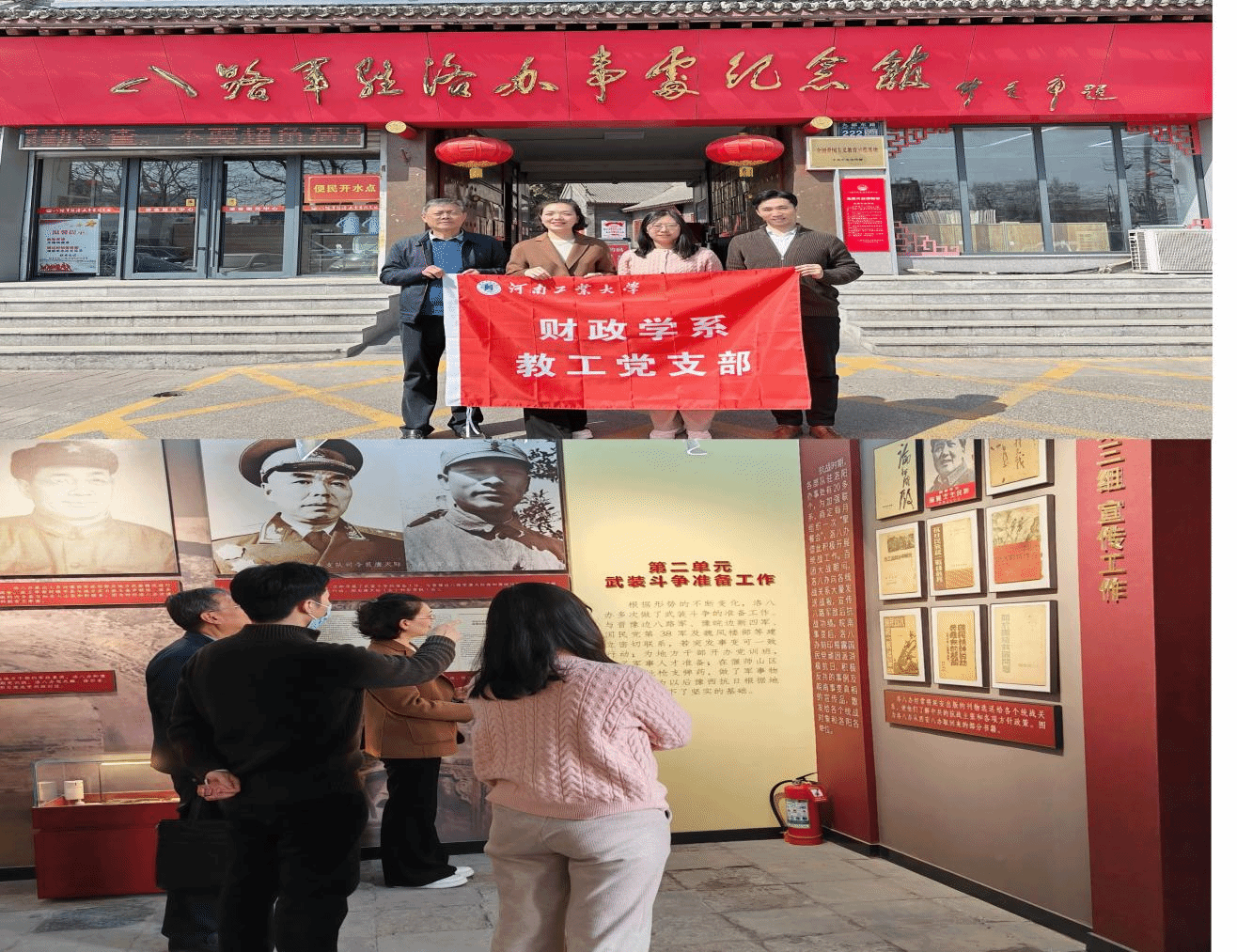 为深入学习贯彻习近平新时代中国特色社会主义思想,传承好党的光荣传统和红色基因,3月21日,财政学系教工党支部赴八路军驻洛办事处(简称“洛八办”)开展主题党日活动,通过现场学习重温革命艰苦岁月,激发党员的爱党爱国情怀。