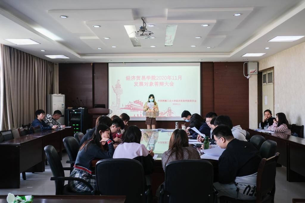 于11月2日中午在3501会议室召开发展对象答辩大会。院党委副书记王鹏、各级辅导员、各级党员代表以及入党积极分子参加此次会议。