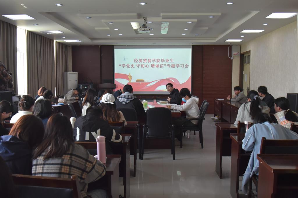 为做好资助政策宣传工作和毕业生国家助学贷款还款工作,通过学习党史故事,培养贷款毕业生诚信理念,4月9日上午,在学院3501会议室召开“学党史 守初心 增诚信”专题学习会,院党委副书记王鹏,院学工办负责人李振宇以及2017级全体贷款毕业生参加了此次会议。会议由毕业班辅导员王秋瑾主持。