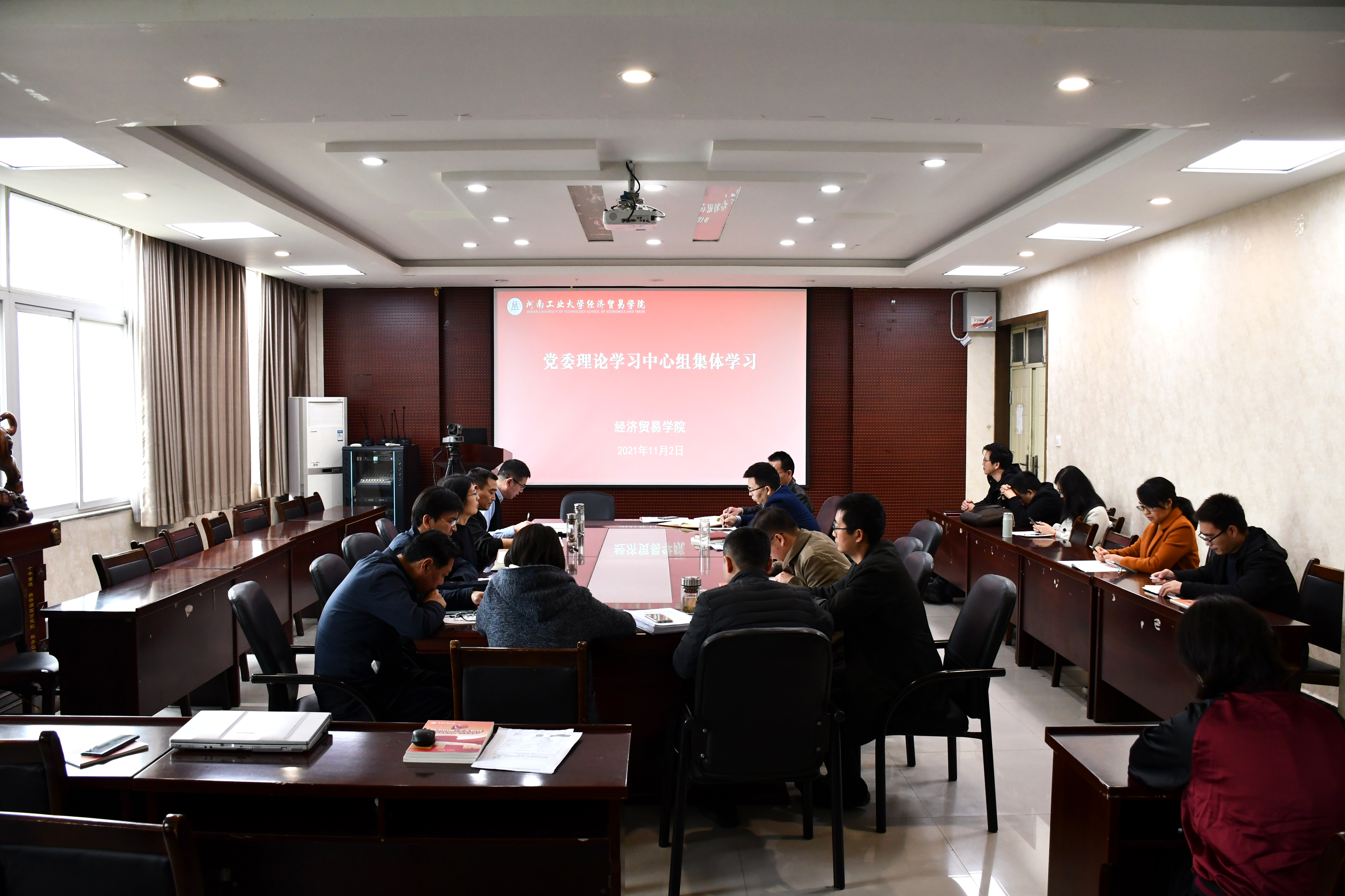 11月2日上午,经贸学院党委召开理论学习中心组扩大会议,传达学习贯彻省委第十一次党代会精神,并就学习领会落实好党代会精神进行安排部署。学院中层以上干部参加会议。
