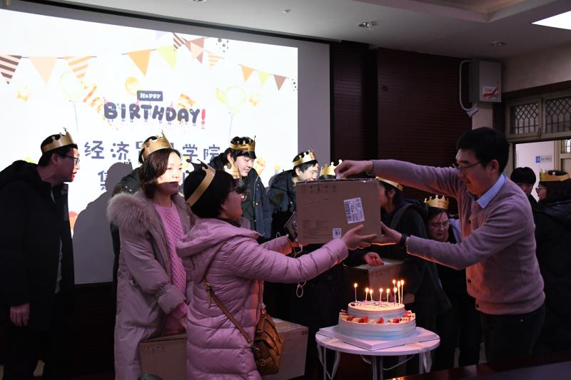 在3501会议室举办了教工集体生日会,为今年恰逢30岁、40岁、50岁的14位老师集体庆祝生日。
