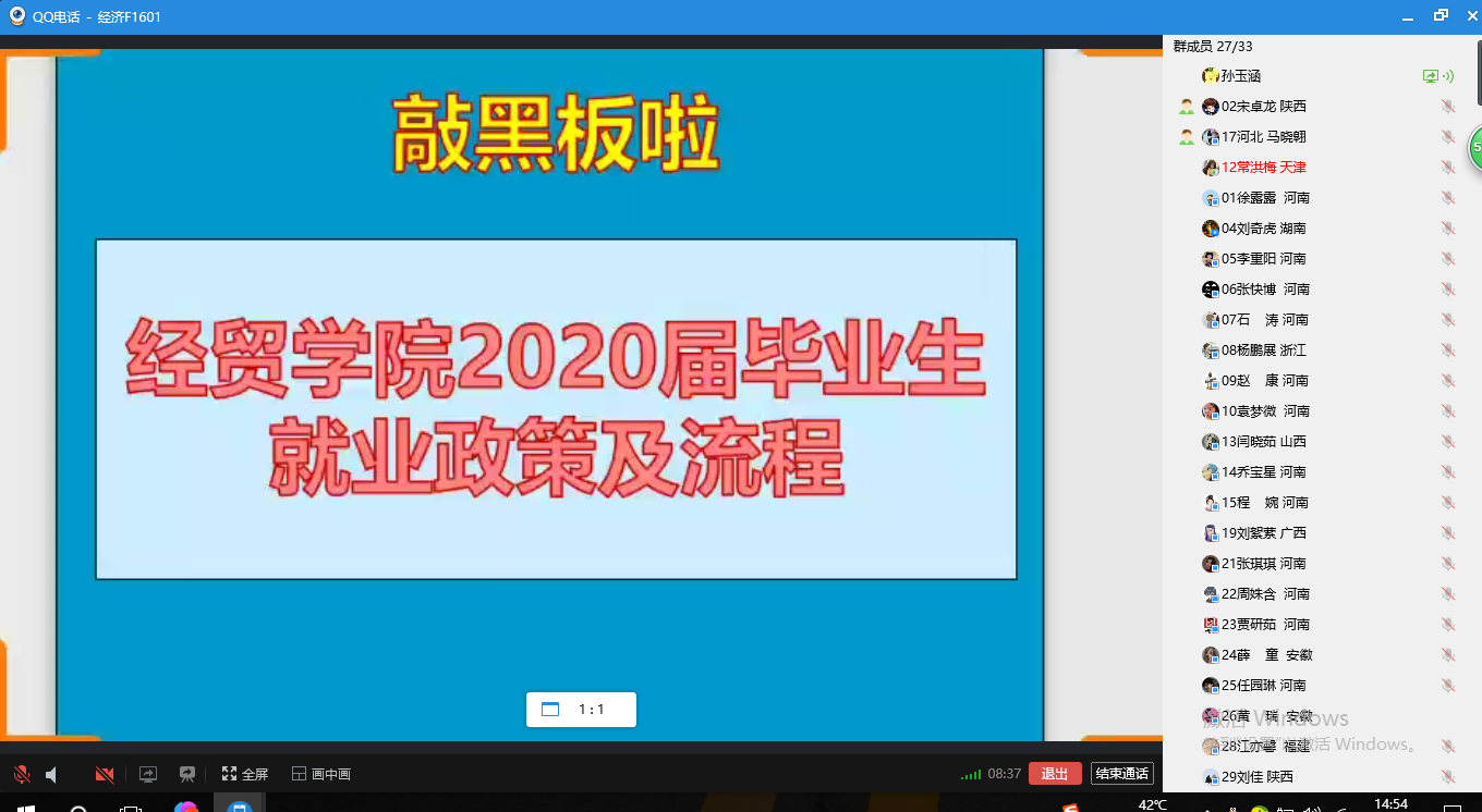 召开2020届毕业生线上就业推进答疑会,毕业班辅导员孙玉涵分批次逐一连线17个班,为学生就业提供精准指导。