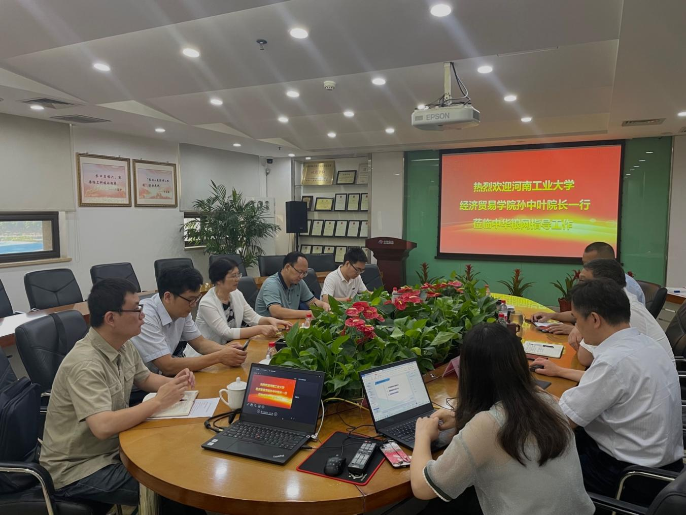 院长孙中叶、副院长李文启等一行6人前往郑州华粮科技股份有限公司(简称“中华粮网”)开展校企合作洽谈工作。郑州华粮科技股份有限公司董事长张照平、浪潮大数据事业部经理张露及相关职能部门负责人等参加了交流。
