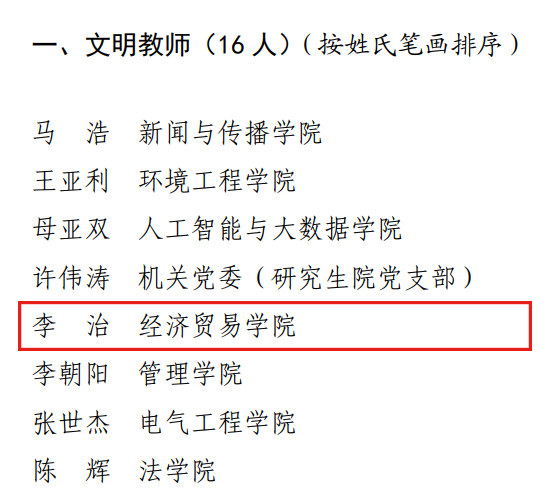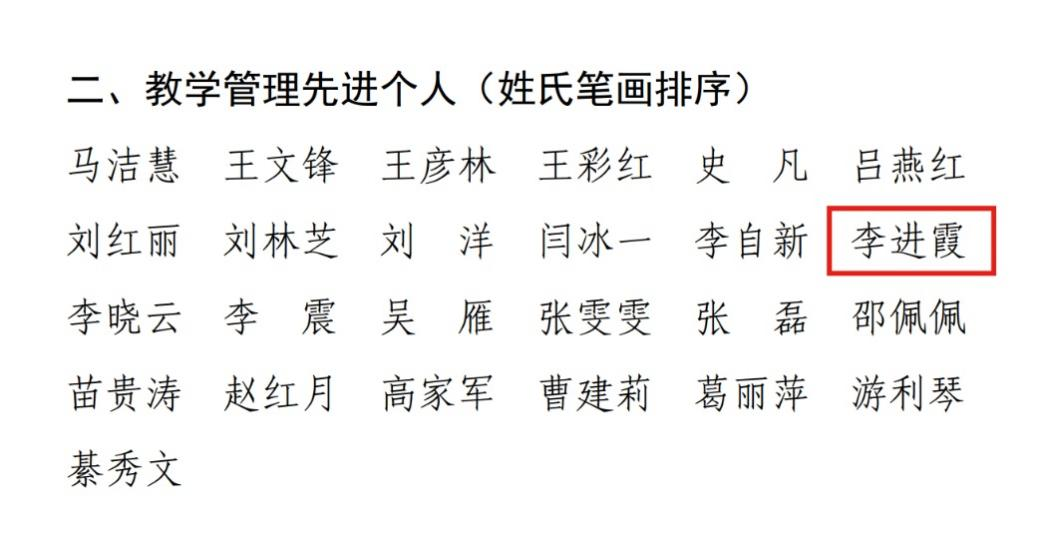 近日,全校开展了“两创两争”(创文明班级宿舍、社团,争当文明教师学生、网民)活动先进集体和先进个人评选推荐工作,经过评审麻豆tv 李治老师荣获学校2023年度“文明教师”,并作为候选人推荐参选省级“文明教师”评选。在学校开展的2022年度教学管理先进单位和教学管理先进个人评选活动中,麻豆tv 李进霞老师荣获学校“教学管理先进个人”荣誉称号。(麻豆tv 撰稿/张福勇 审稿/李刚)