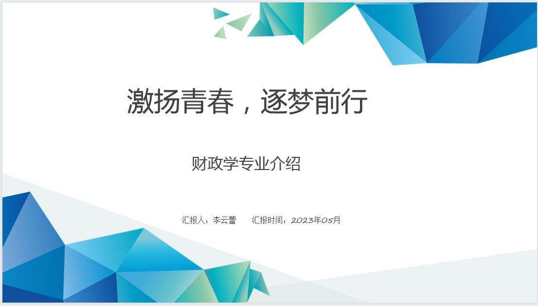财政学专业李云蕾老师以“激扬青春,逐梦前行——财政学专业介绍”为主题,从教师结构、教学能力、科研能力、实践能力等四个方面介绍了财政学专业的师资队伍,其中“专职教师+外聘教师”的双师型教师团队是财政学专业的突出亮点之一,此外,基于基础能力、专业能力、综合能力、课外拓展的“四元循环”人才培养模式是财政学专业的突出特色之一。