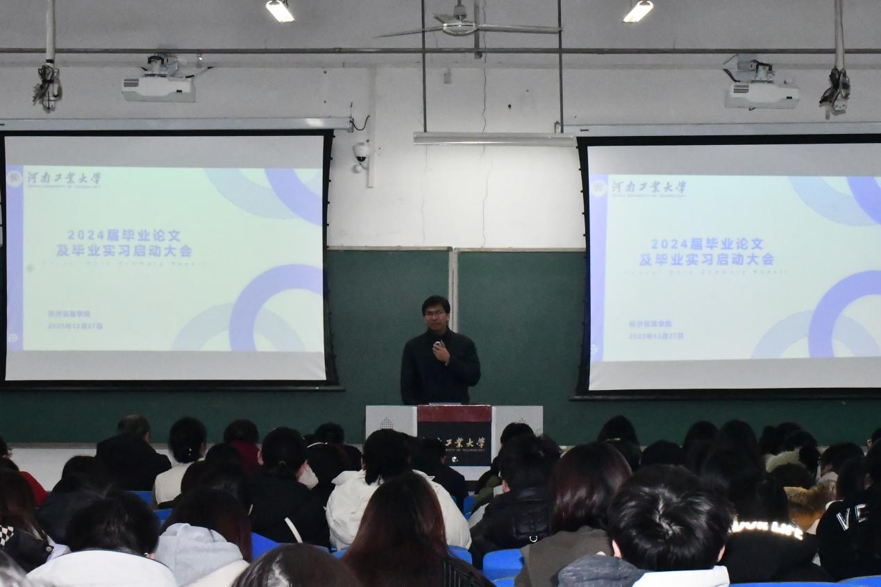 在3101教室召开2024届毕业论文及毕业实习启动大会。会议由副院长朱坤林主持,2024届全体毕业生及毕业论文指导教师参加了会议。